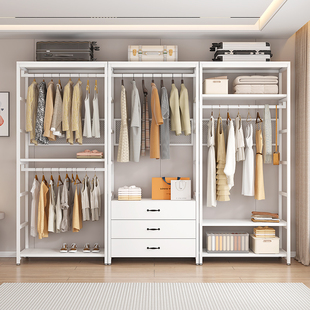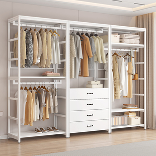 衣帽架落地卧室家用防尘衣柜简易挂衣架金属衣帽间架子置物架一体