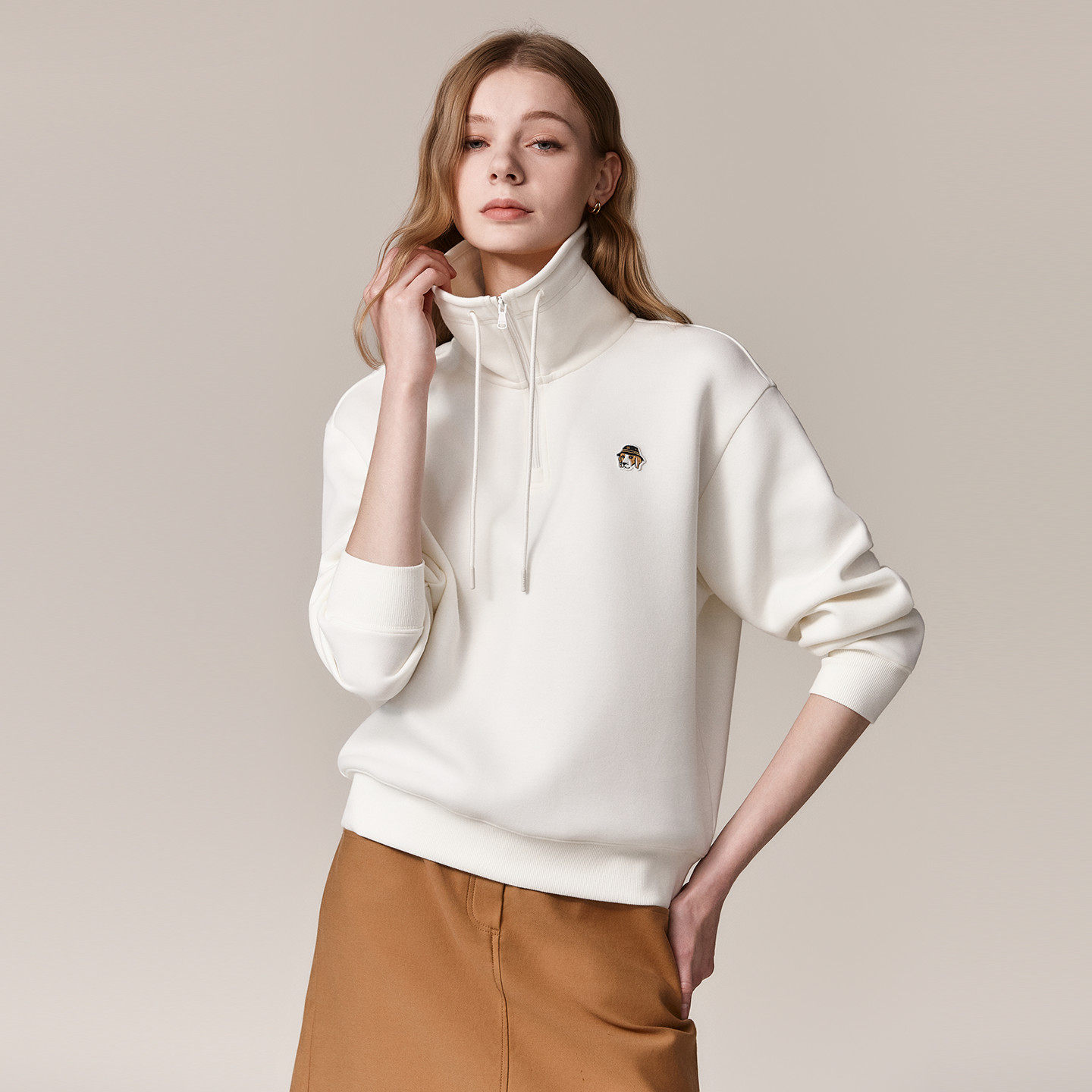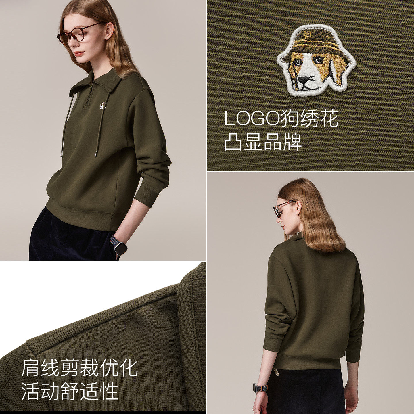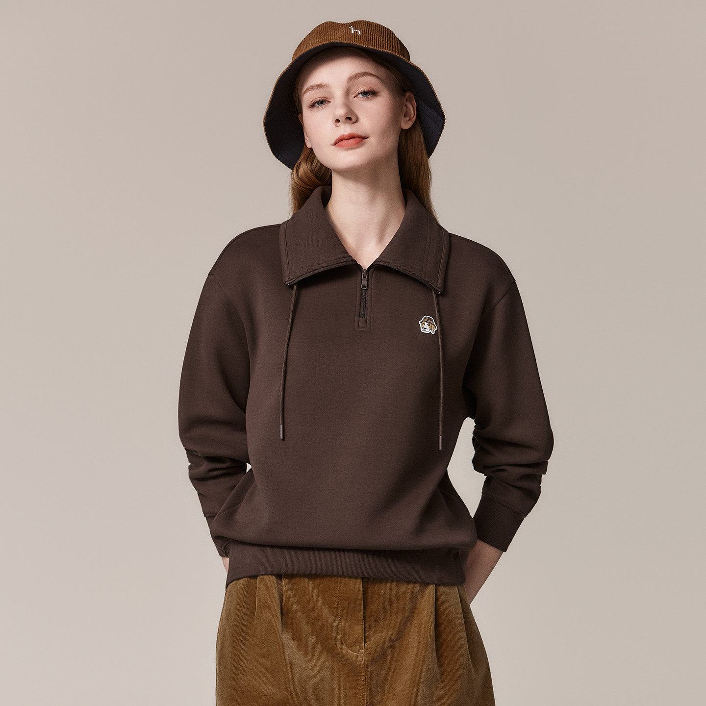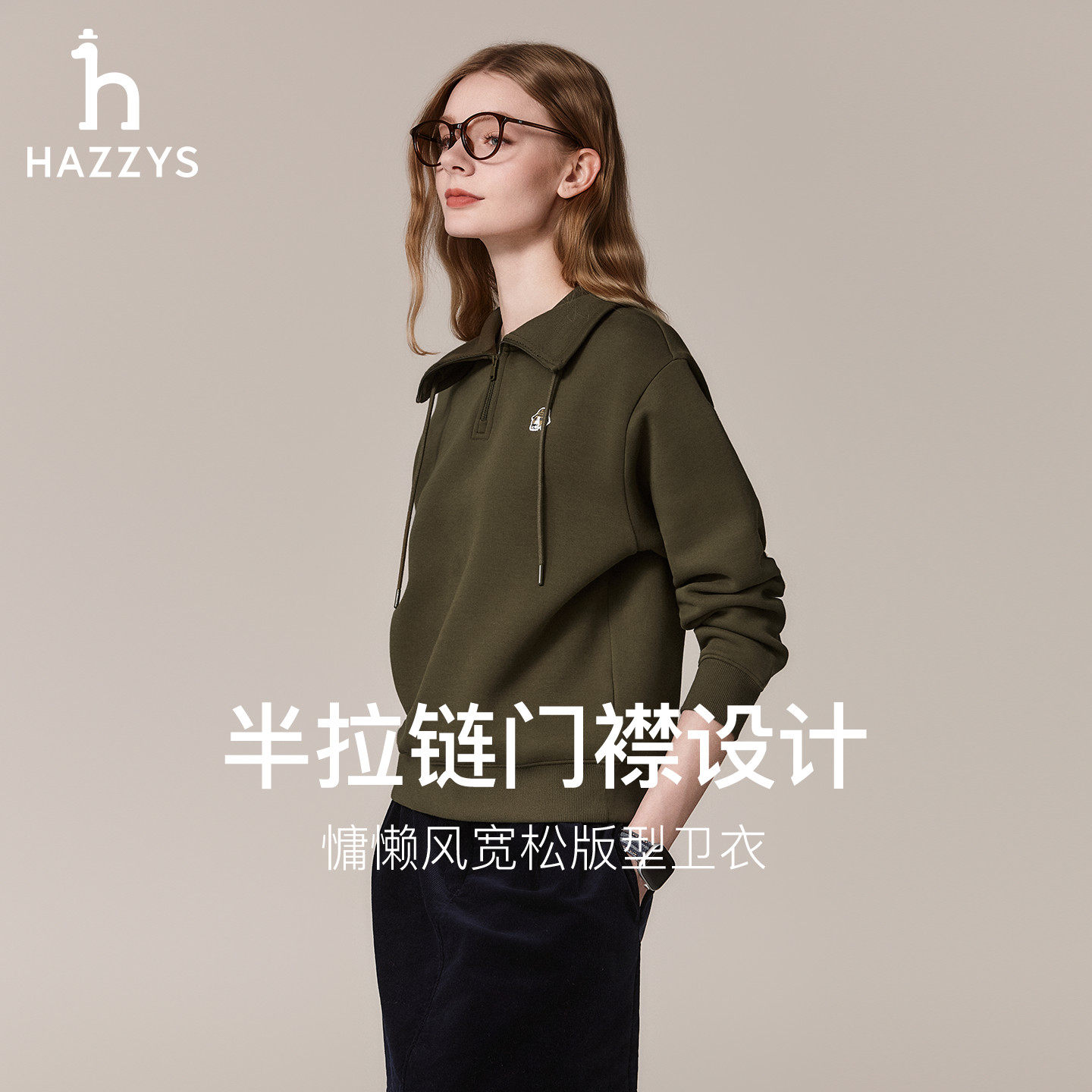 Hazzys哈吉斯女士半拉链卫衣女秋季 潮宽松轻磨毛通勤翻领上衣 时尚