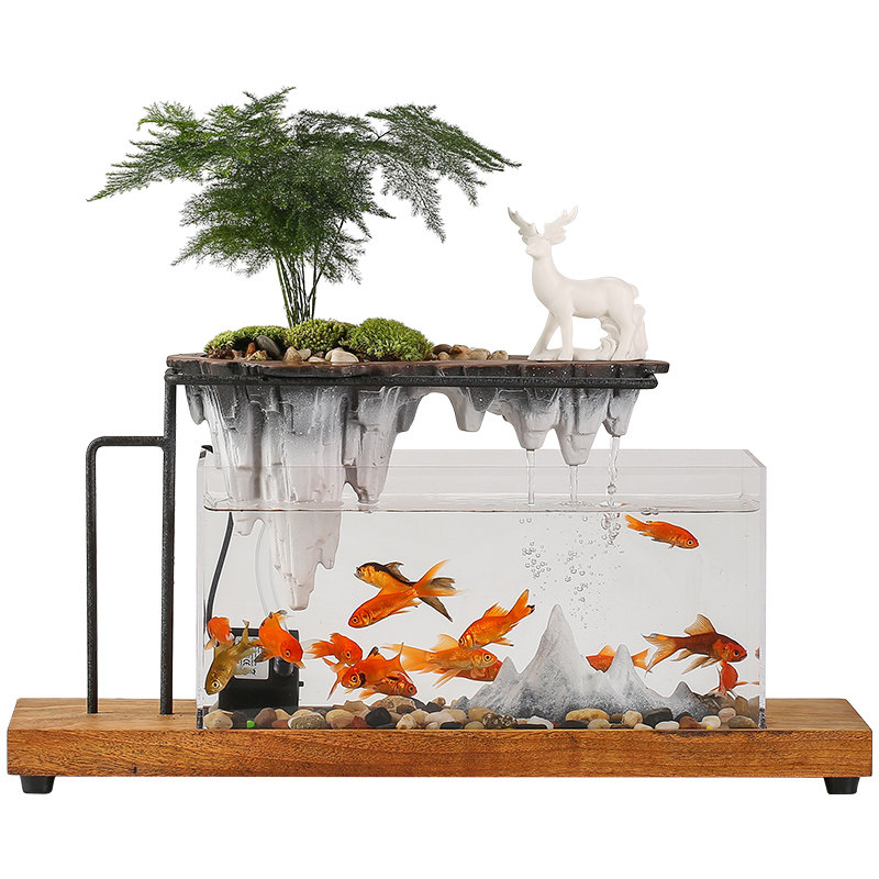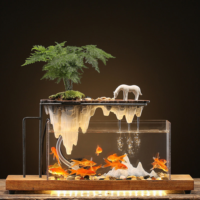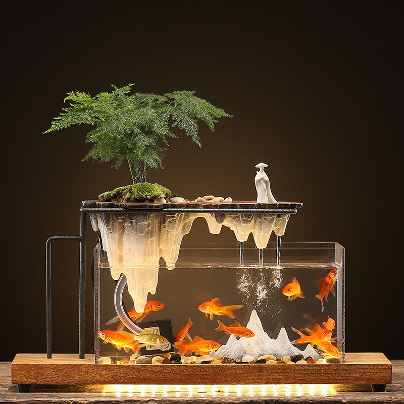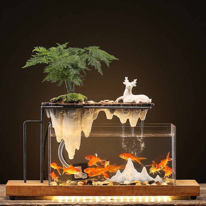创意办公室桌面循环假山流水景观鱼缸摆件装 饰客厅玄关开业礼物品