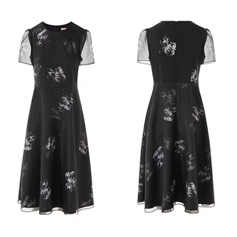 新款 女装 圆领短袖 时尚 显瘦优雅气质中长裙子 连衣裙 印花修身 夏季