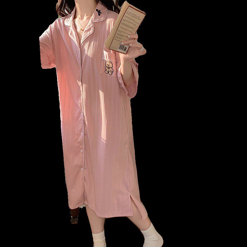 睡裙女夏季 孕妇睡衣夏款 纯棉2024年新款 产房女士大码 夏天短袖 衬衫