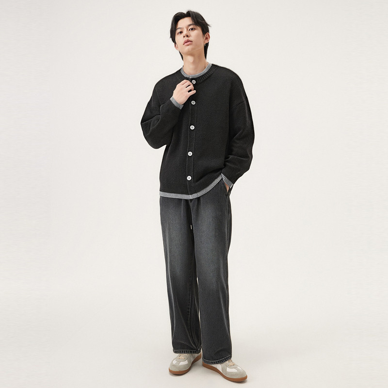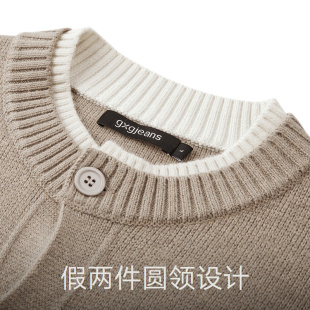 春秋热销 外套男 gxg.jeans男装 含羊毛假两件宽松开襟毛衣线衫