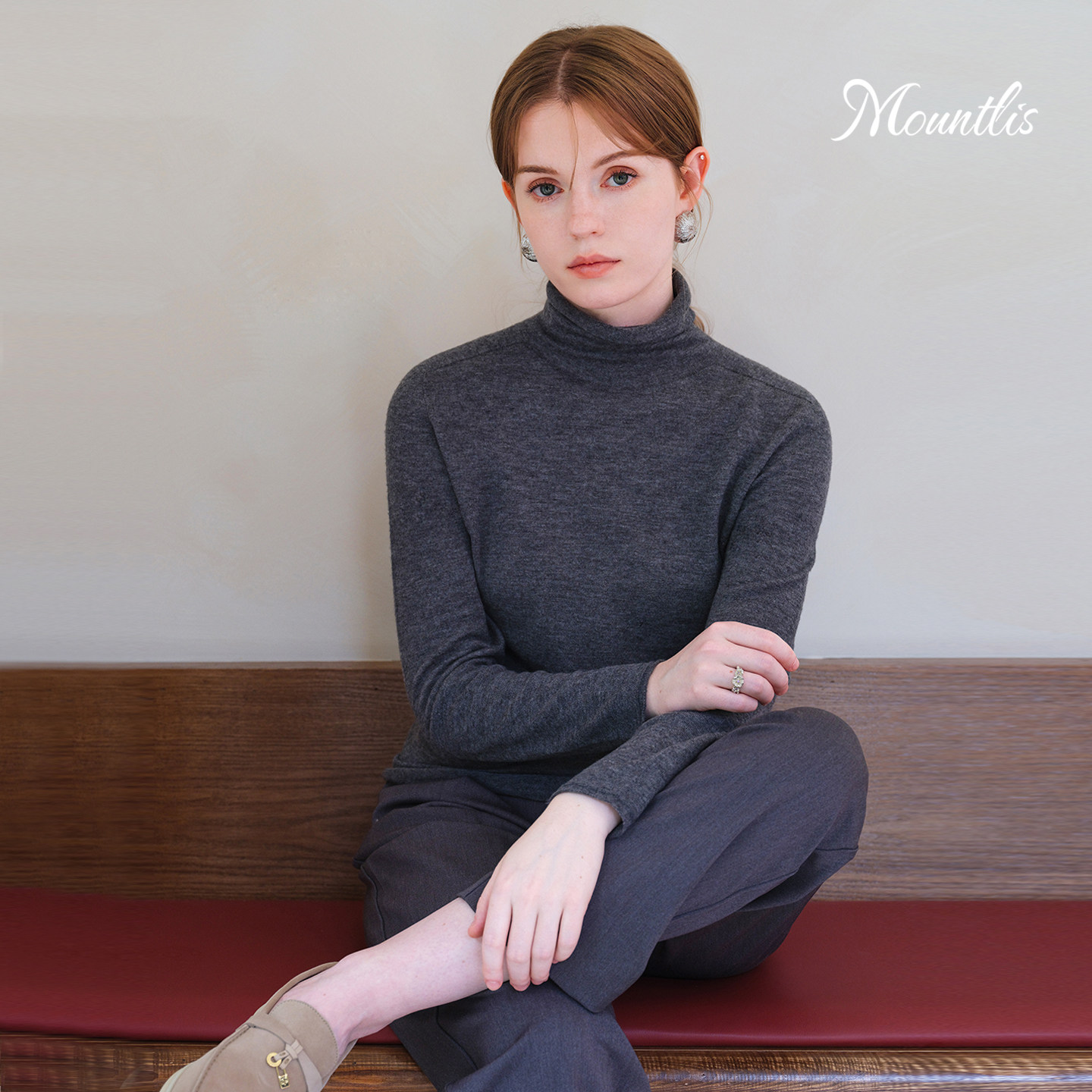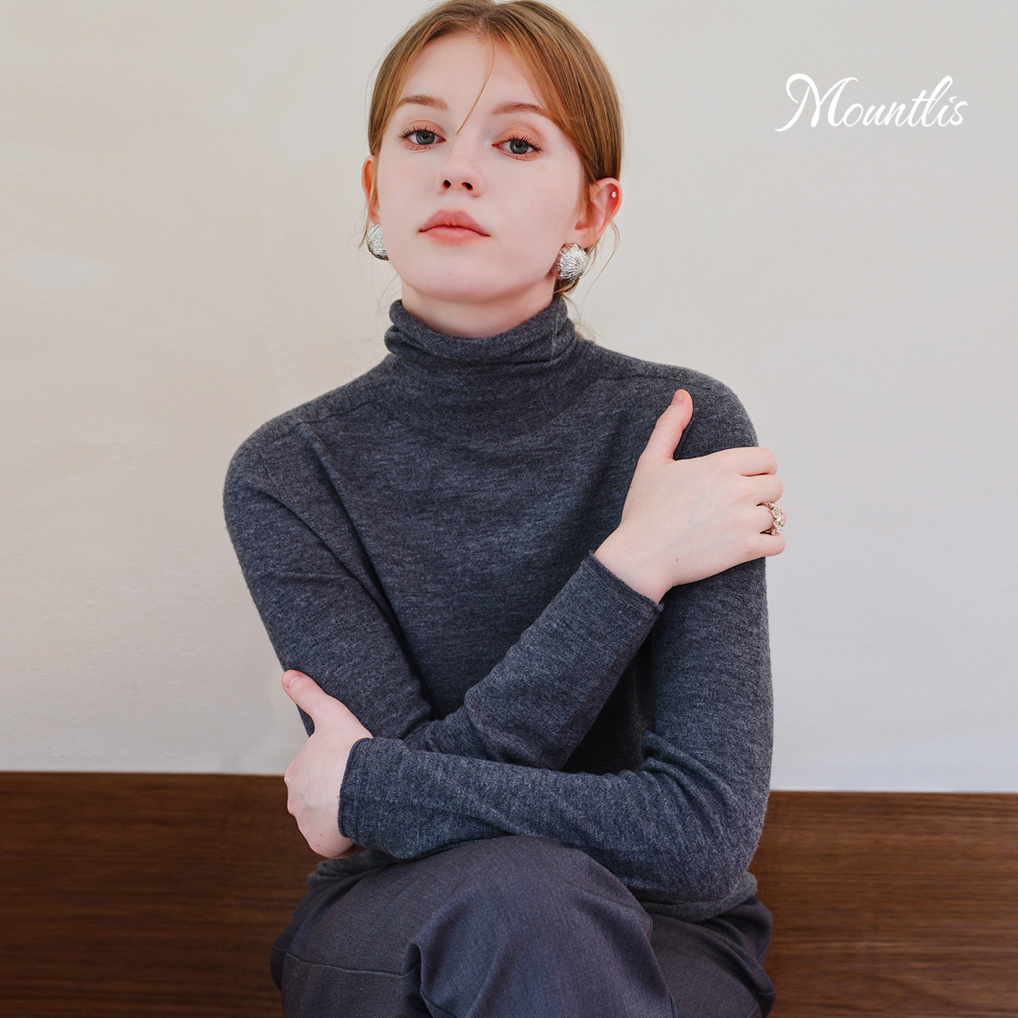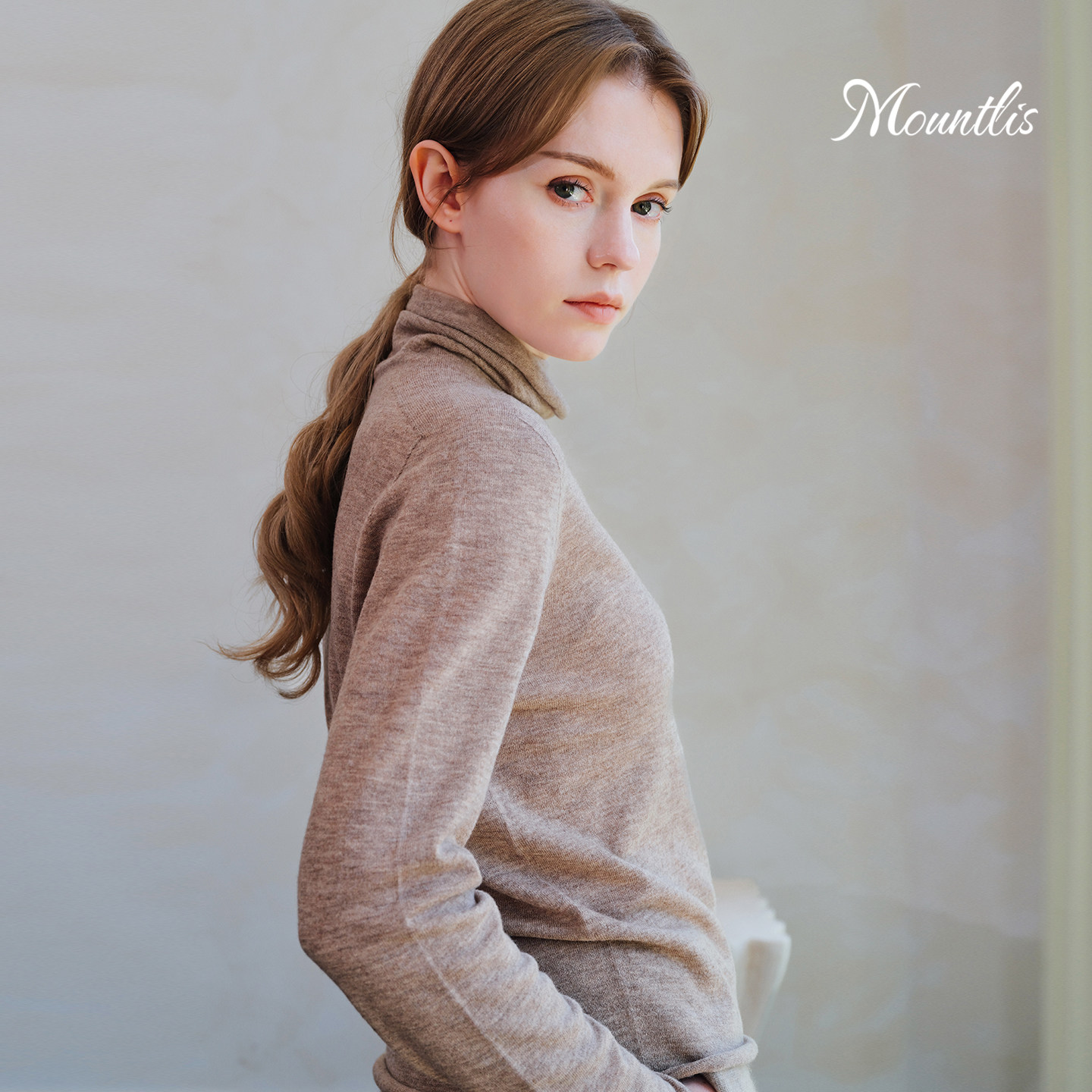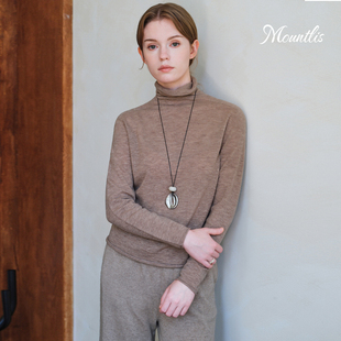 Mountlis蒙缇100%美利奴羊毛堆堆领打底针织衫 上衣高领内搭毛衣女