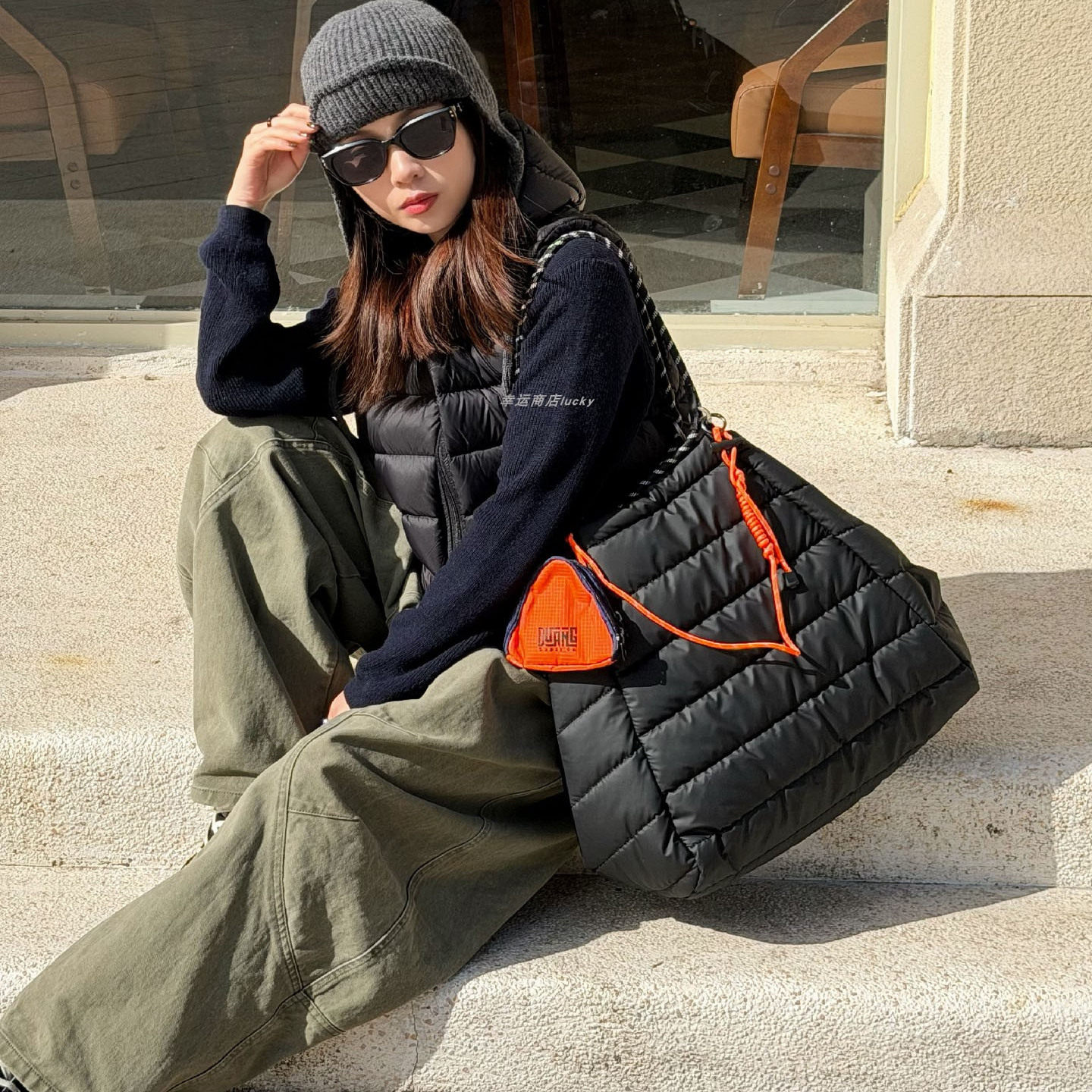 幸运商店简约排骨夹棉单肩包防水尼龙编织绳手提包大容量云朵包
