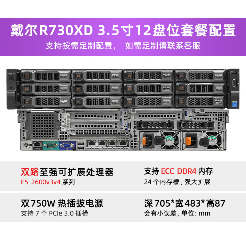 戴尔R730XDR740XDR750XA机架式 服务器主机存储多开虚拟化数据库