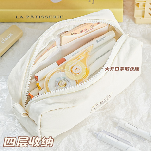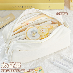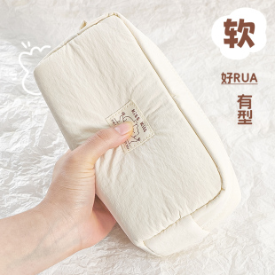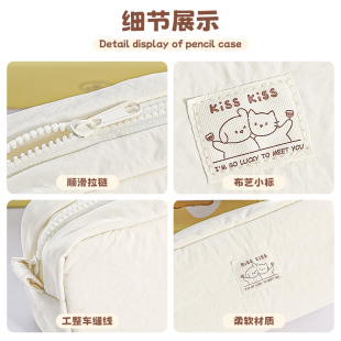 小学生高颜值ins小众韩系文具袋 初中生高中纯色铅笔文具盒女孩款 软软超解压 小猫笔袋简约大容量女生2026新款