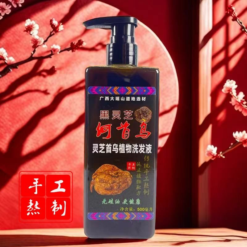 手工熬制黑灵芝何首乌侧柏叶无患子洗手果植物洗发水液滋润去屑滋