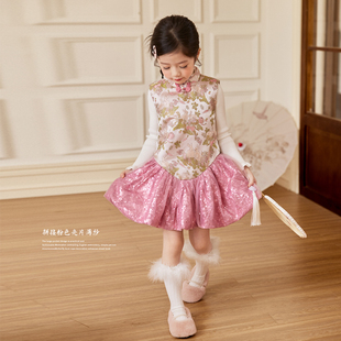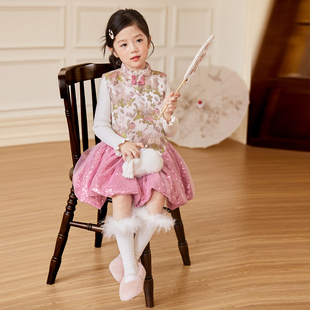 女童过年衣服国风网纱裙子 连衣裙女2026新款 小O宝童装 宝宝新中式