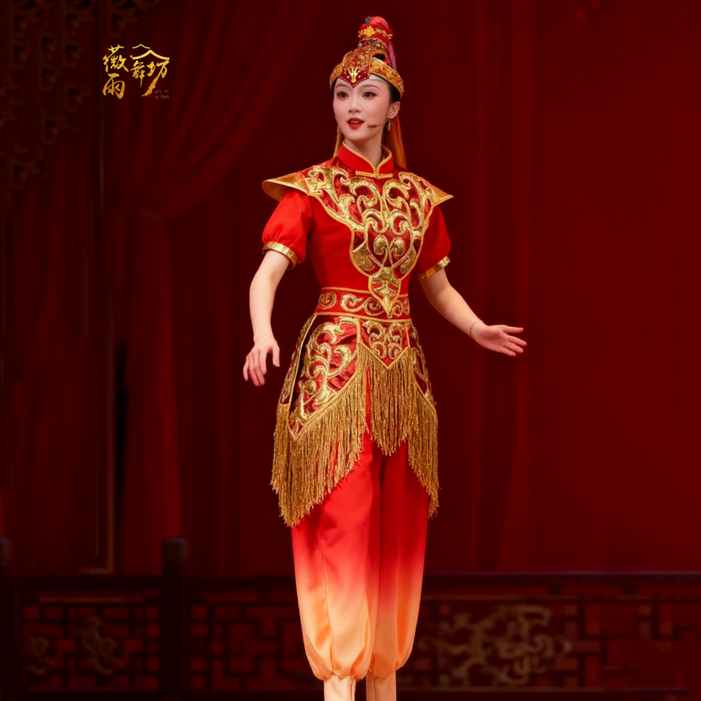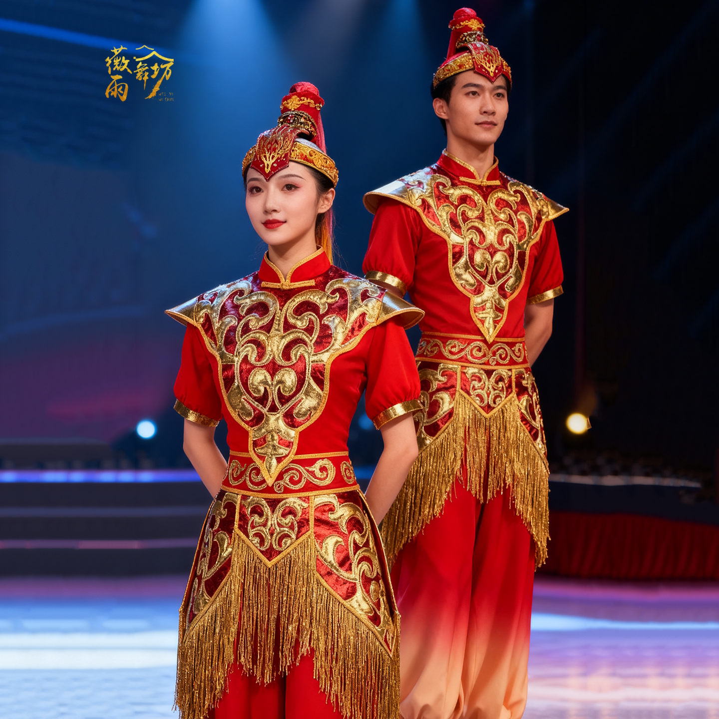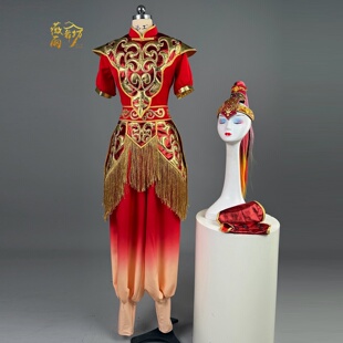 新款 打鼓服演出策马奔腾男女成人腰鼓水鼓舞锣鼓队红色舞蹈服出租