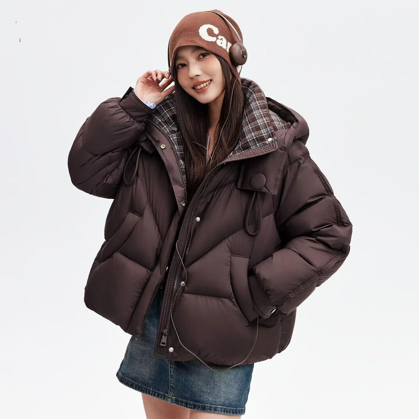 MODE 2025新款 美式 棉衣棉服女冬季 保暖加厚外套 连帽毛领短款 ICH