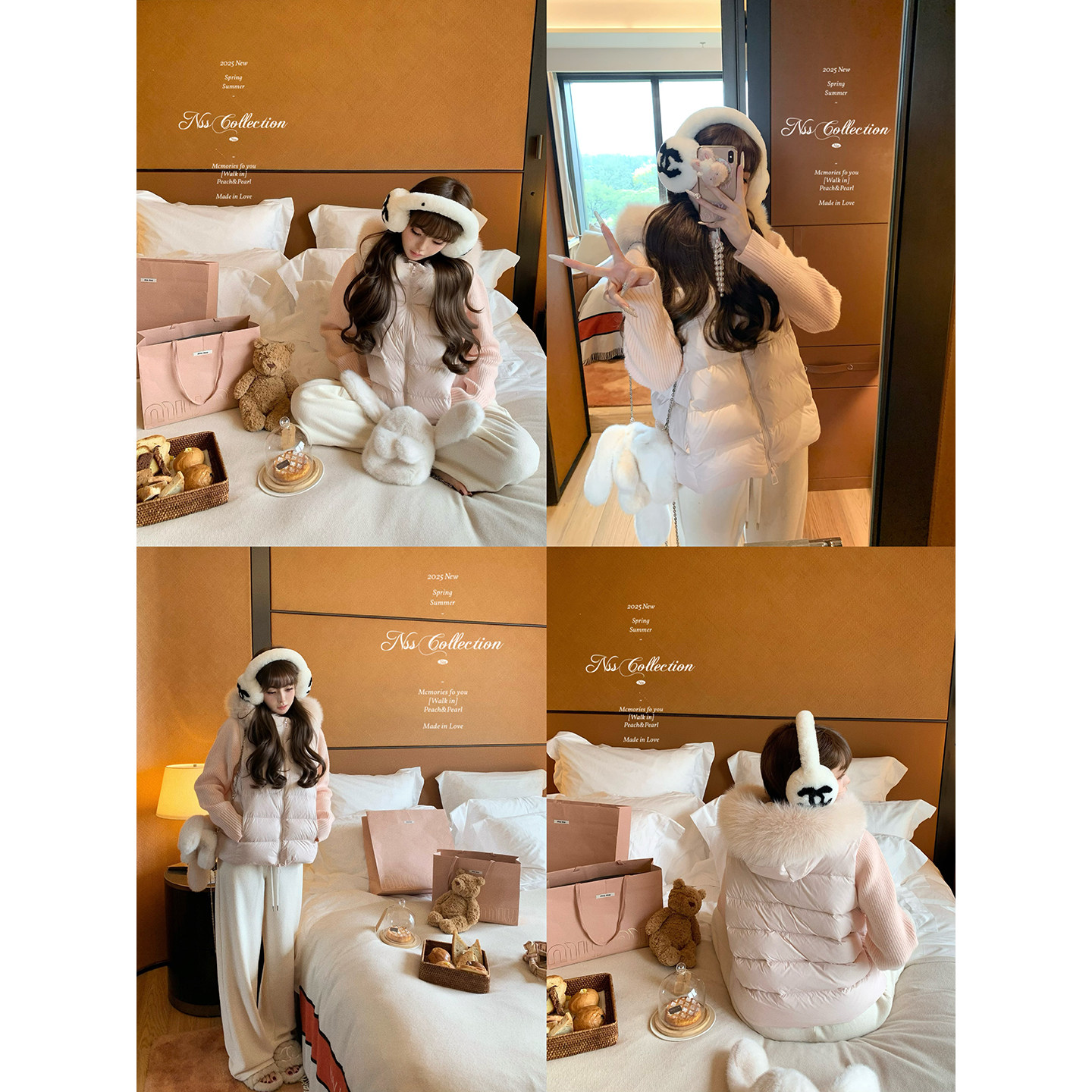 针织拼接连帽90白鸭绒真狐狸毛羽绒服 裕美子 NSS COLLECTION