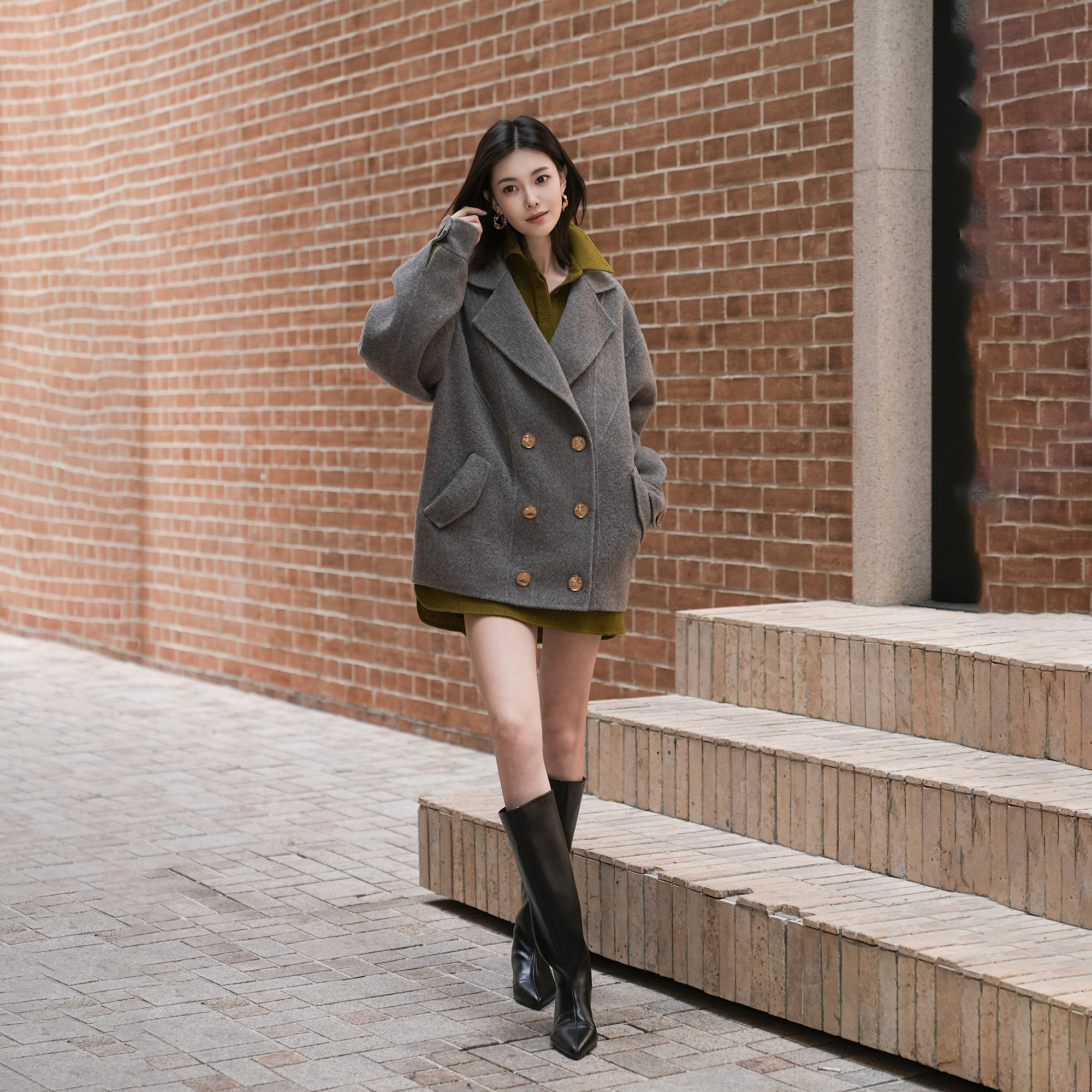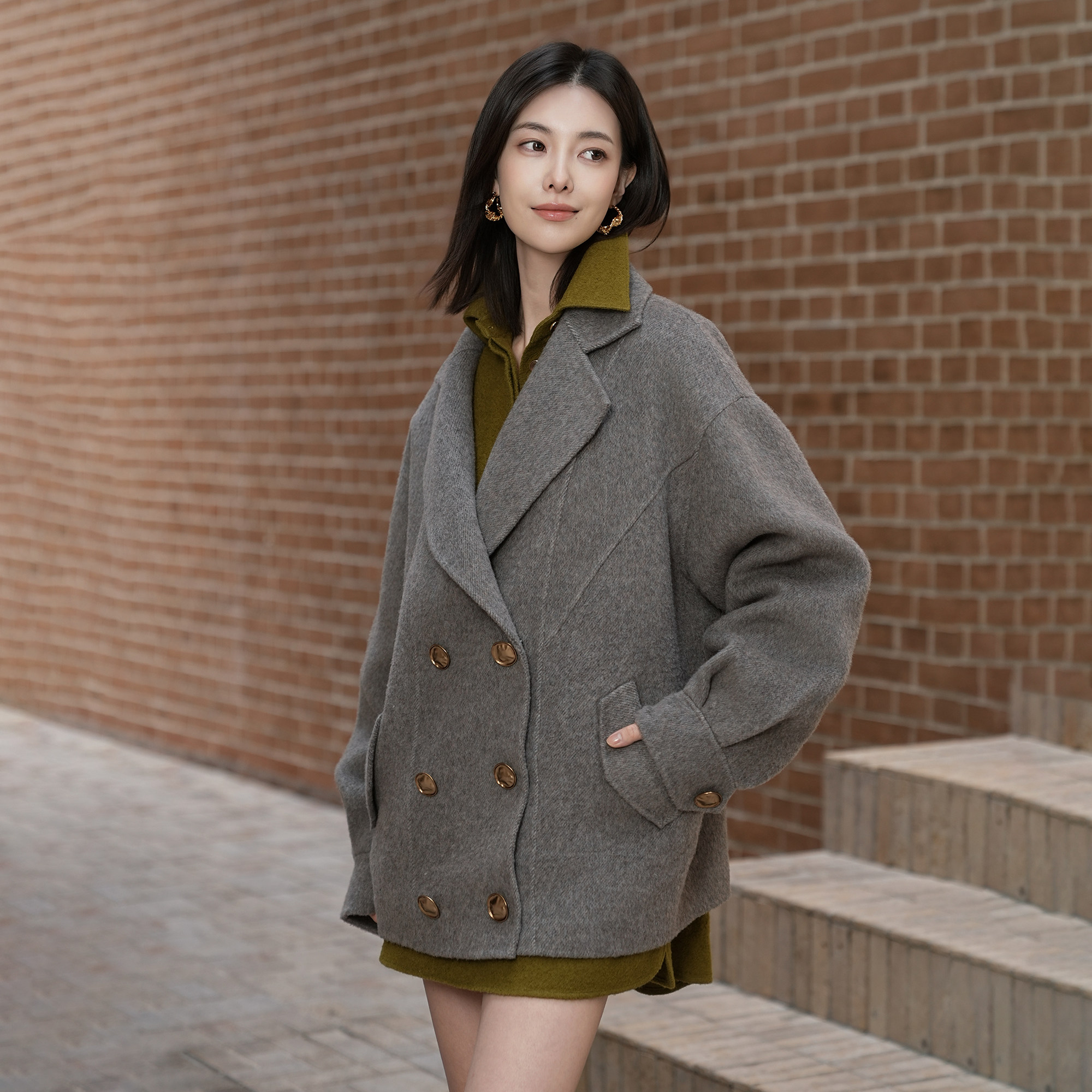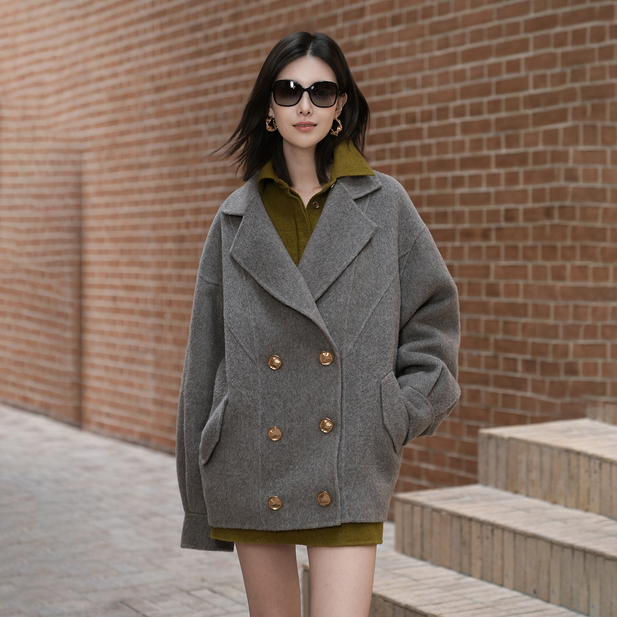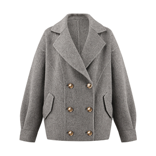 慵懒双面呢大衣短款 100棉羊毛时尚 廓形羊毛外套高级感 YOLLA