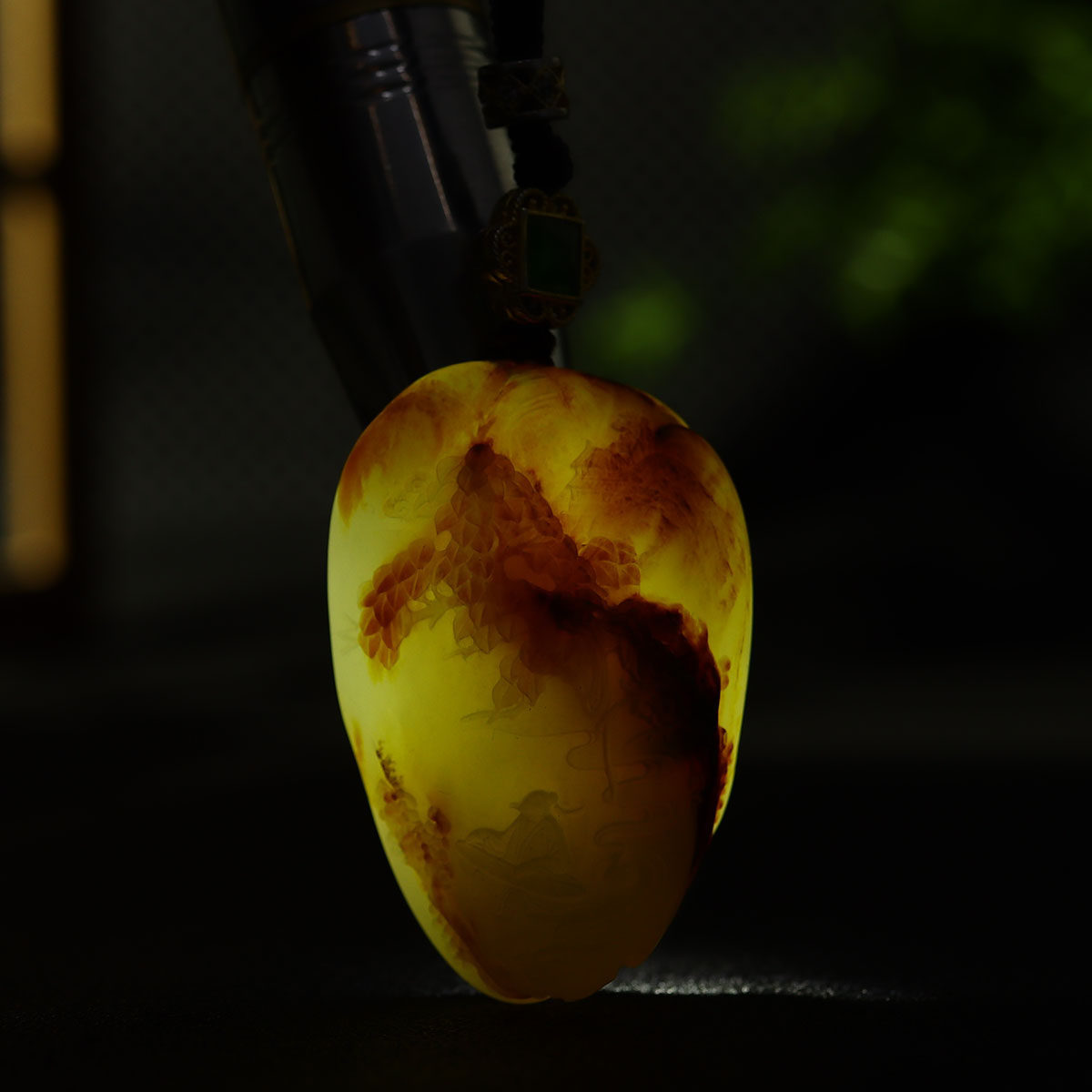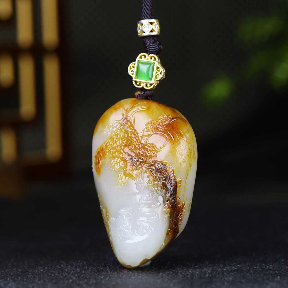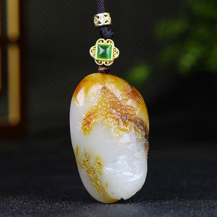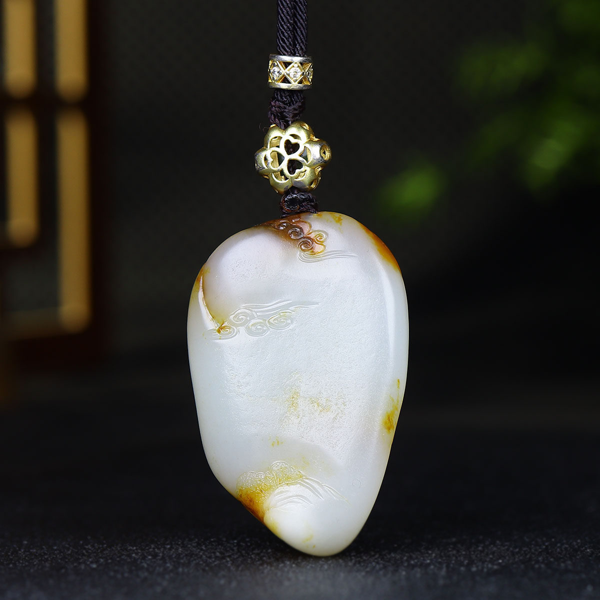 新疆和田玉白玉籽料俏雕山水挂件吊坠玉坠59g 古晨珠宝