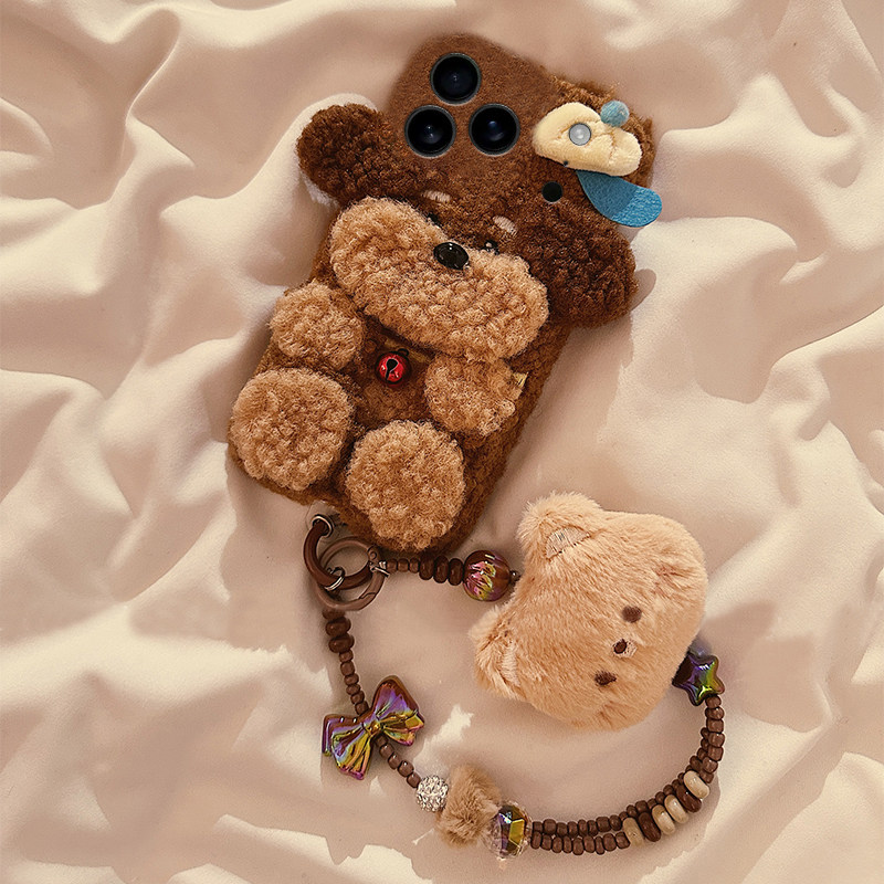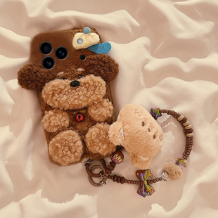 适用vivoy78y35y36y37手机壳y52s毛绒泰迪y53s毛茸公仔链条y55t高级y73s网红y76s超火y85y93y70s女z6z5u3x新n