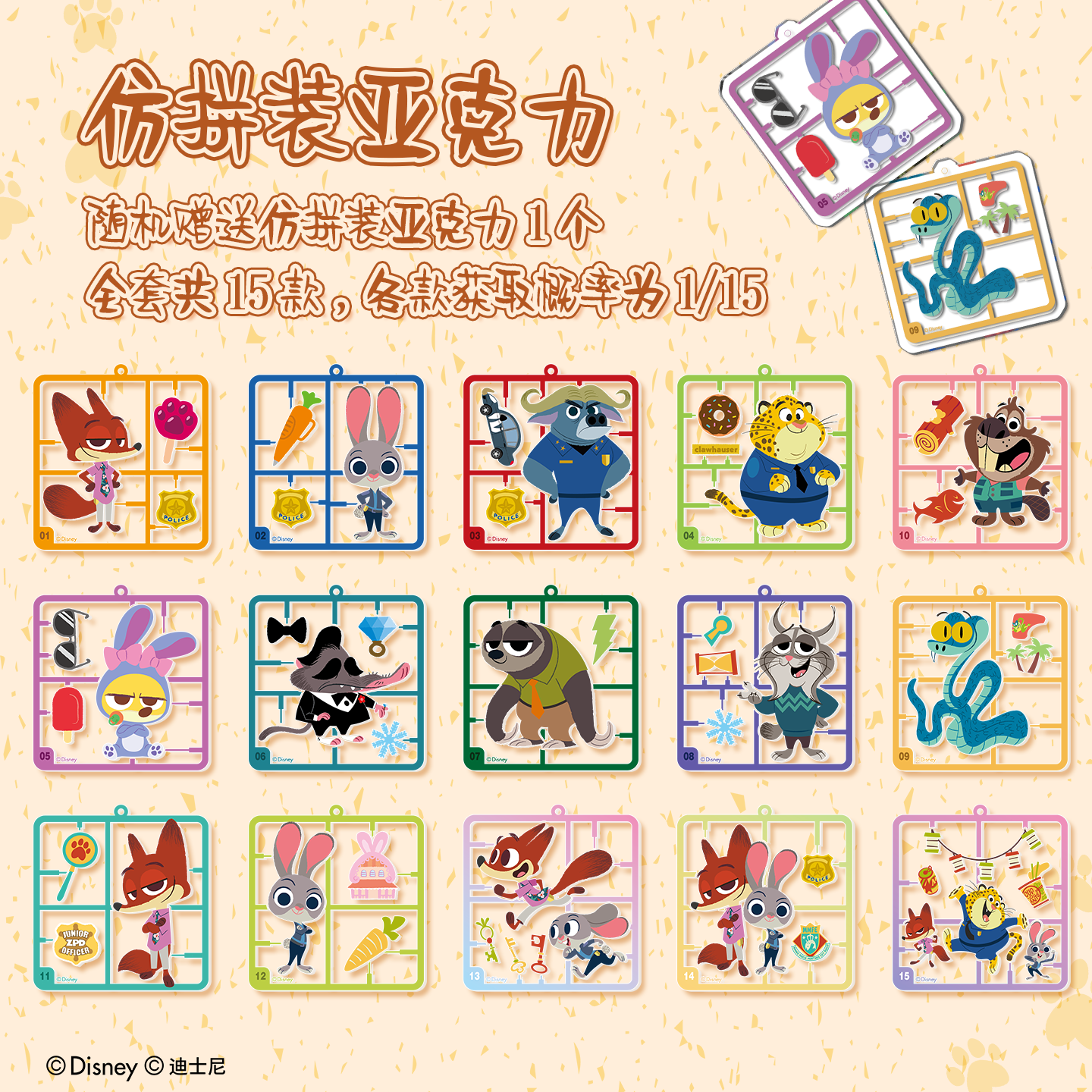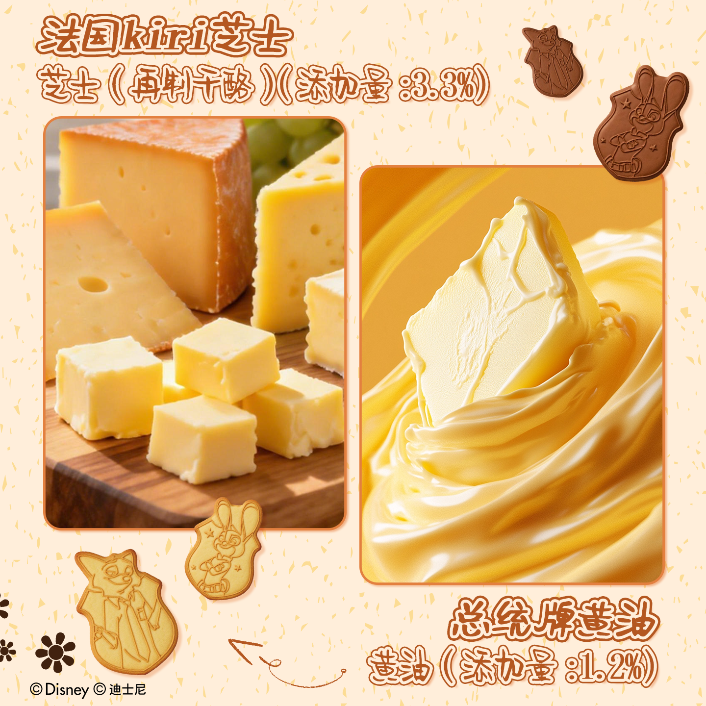 疯狂动物城黄油芝士薄脆饼干升级款 迪士尼周边添乐卡通王赠挂件
