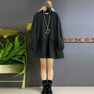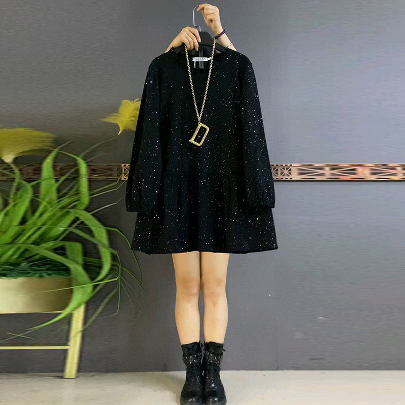 时尚 韩版 木耳圆领亮闪大衫 大码 胖mm遮肉显瘦上衣 2025秋季 女装 新款