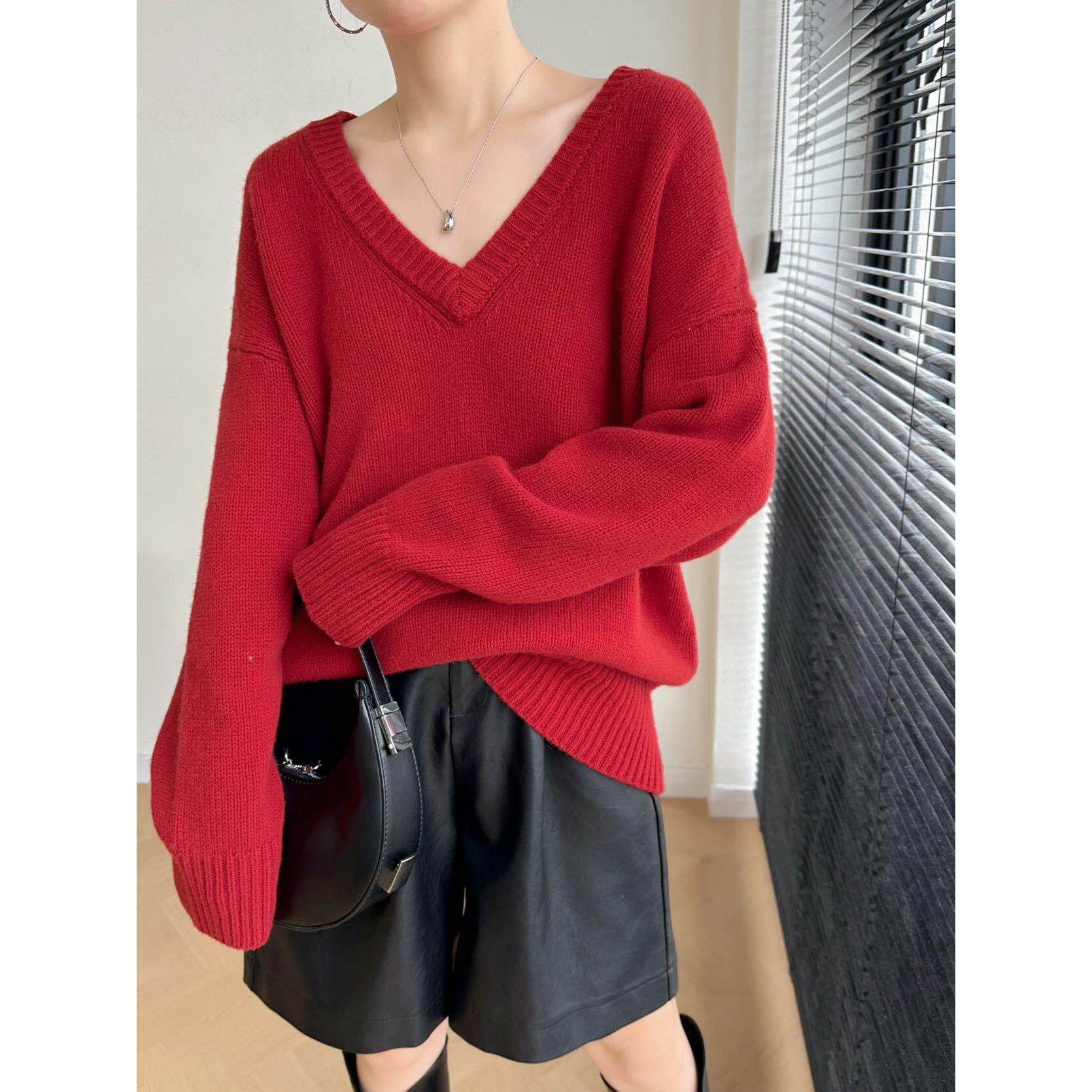Life气质MAX美利奴全羊毛重磅加厚大V领针织羊毛衫 Rouje 现货
