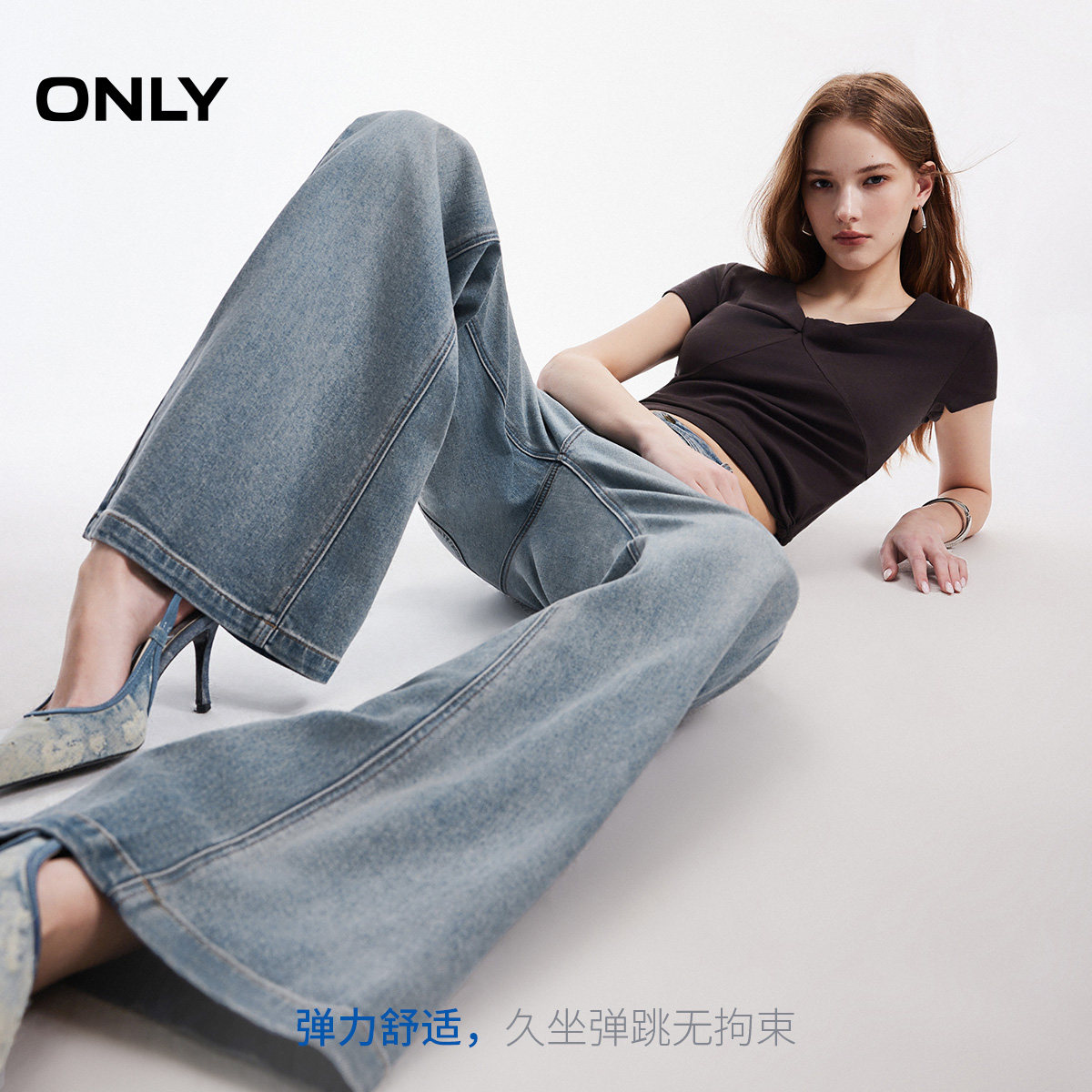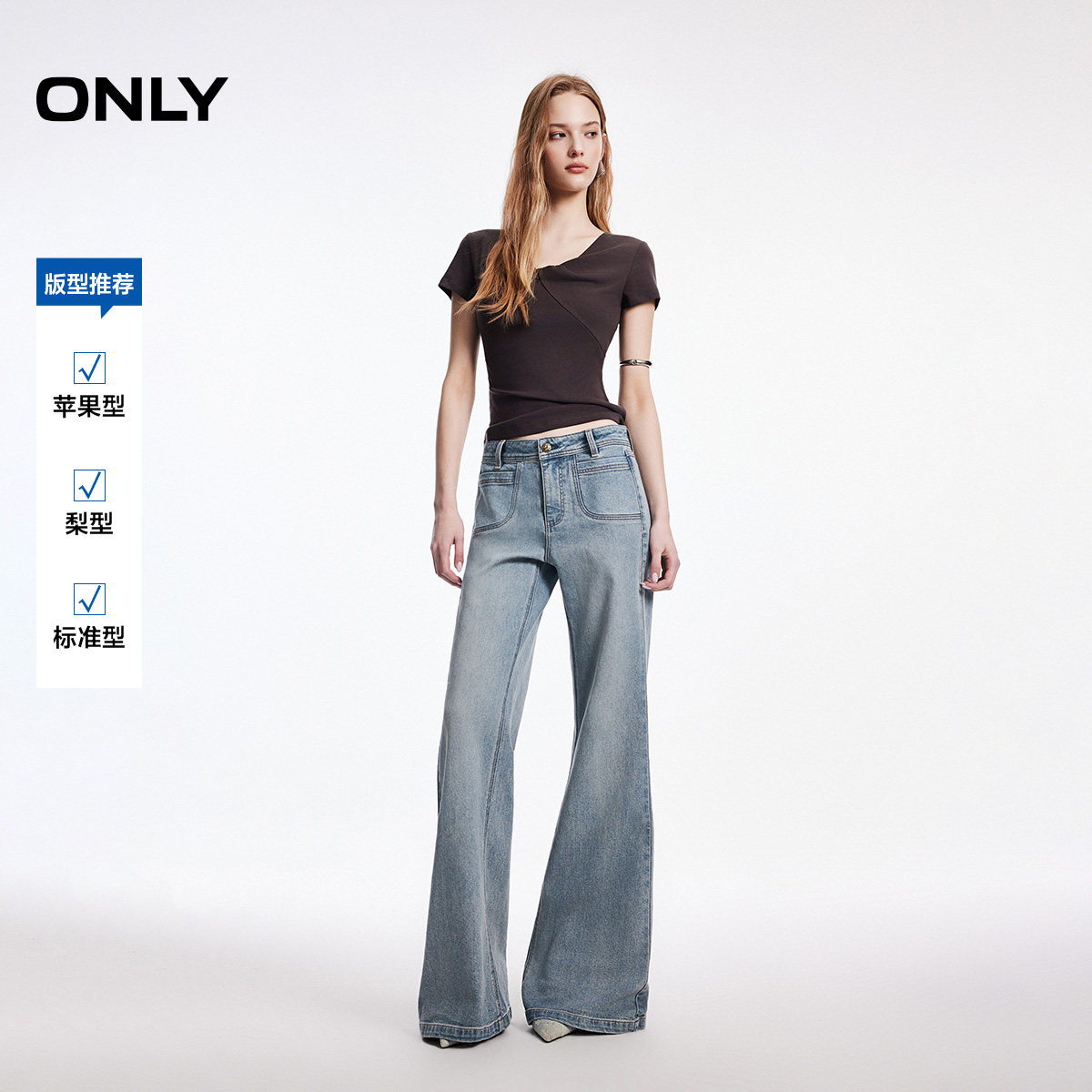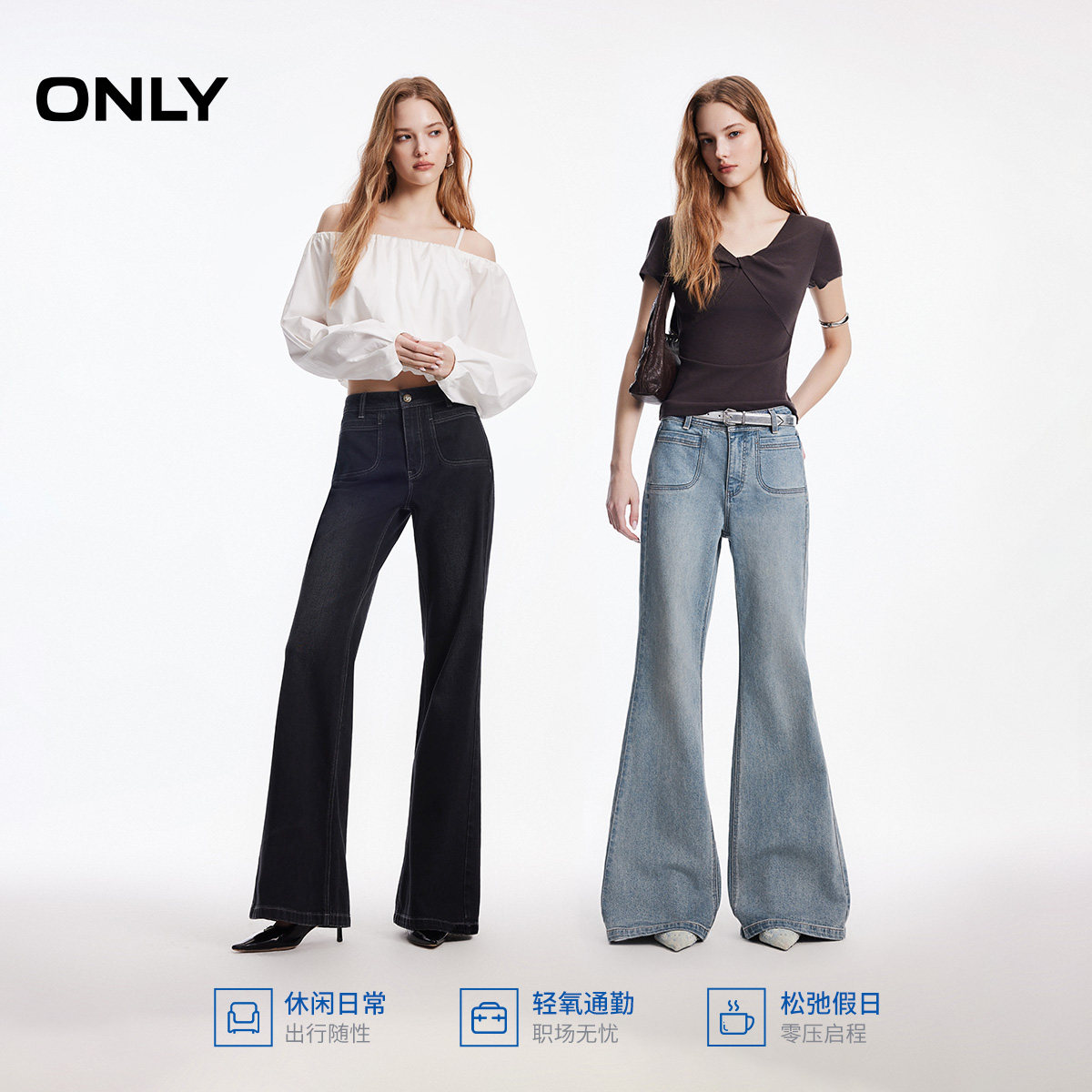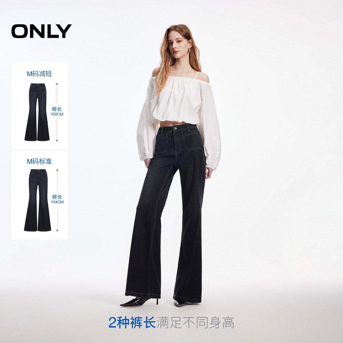 新款 牛仔裤 对称贴袋装 喇叭裤 女 饰舒适亲肤高腰长裤 ONLY2026春季