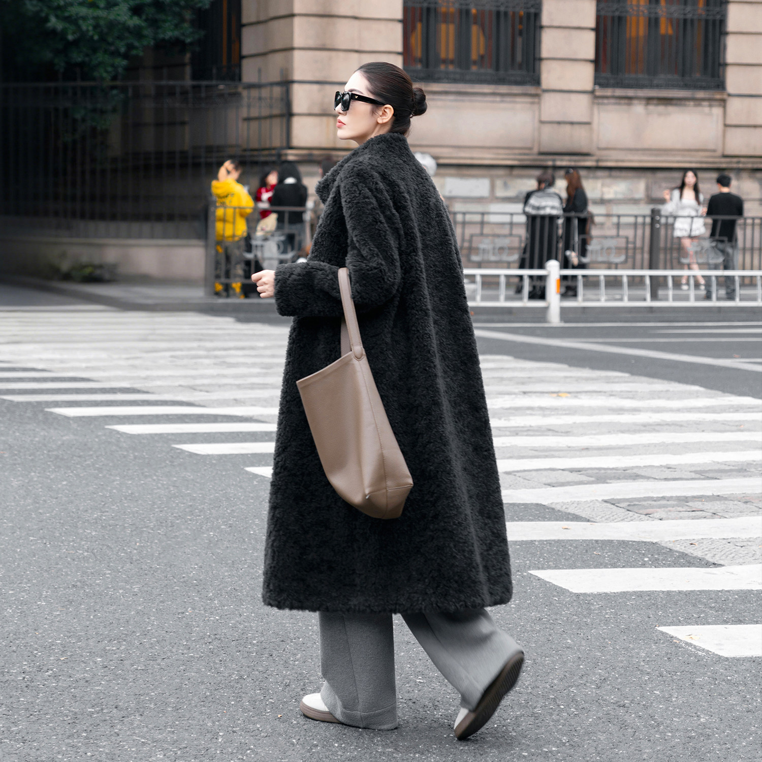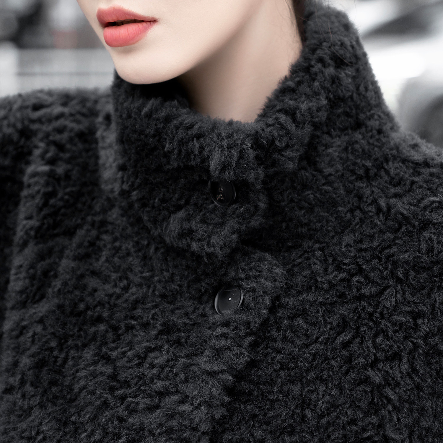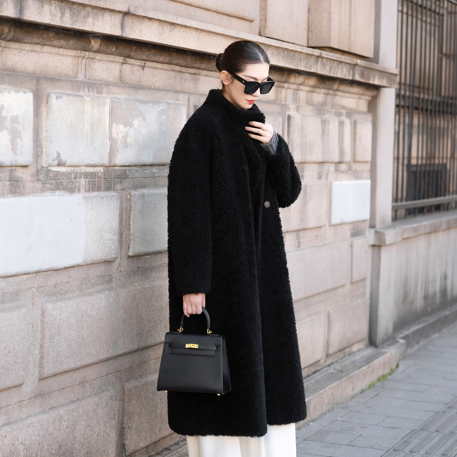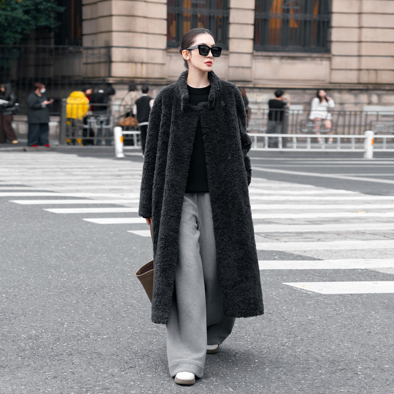 知喜ziJoy 春季 羊毛爆款 黑色皮草女款 百搭高级感保暖外套 长款