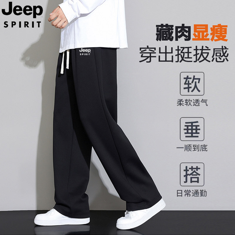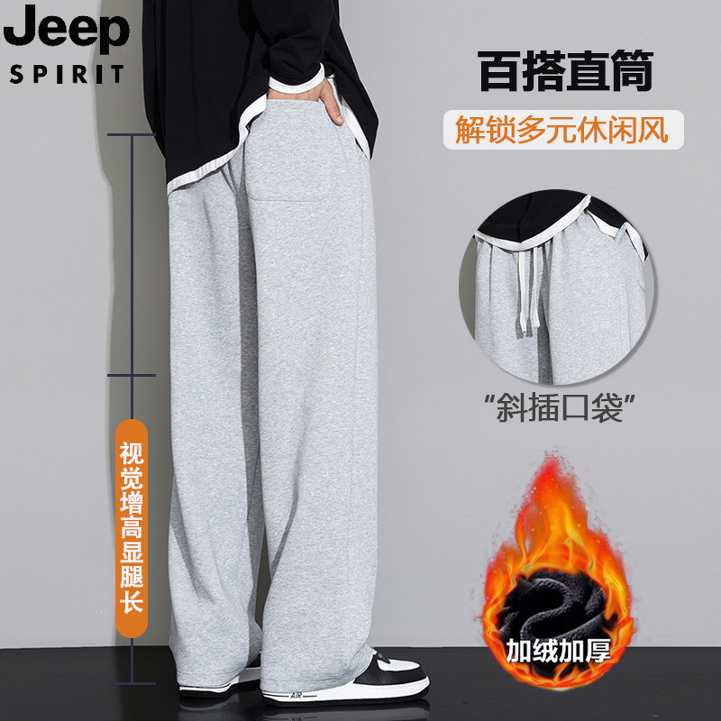 休闲直筒秋冬加绒卫裤 JEEP吉普裤 2025新款 纯棉宽松运动长裤 子男士
