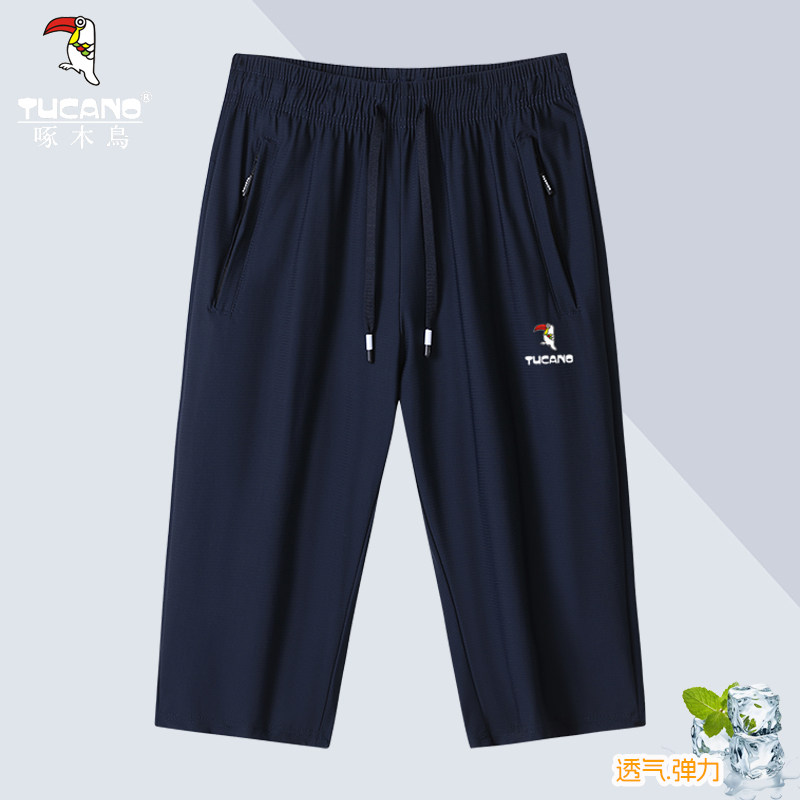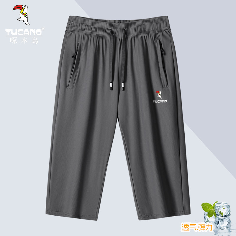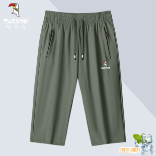 子夏季 七分裤 薄款 中裤 啄木鸟男士 休闲宽松速干高弹运动短裤 冰丝裤