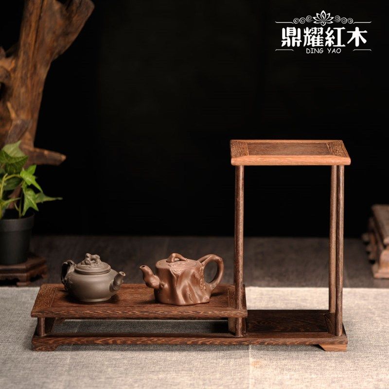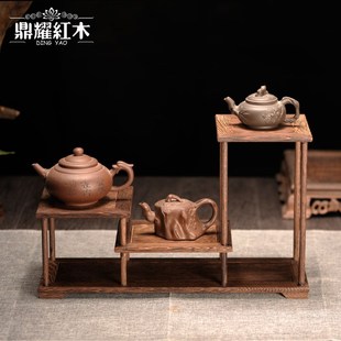 茶壶紫砂壶架子 鸡翅木实木托架多宝阁底座 茶具架小博古架架