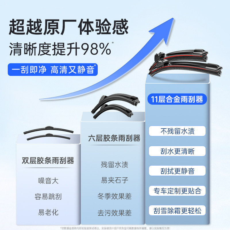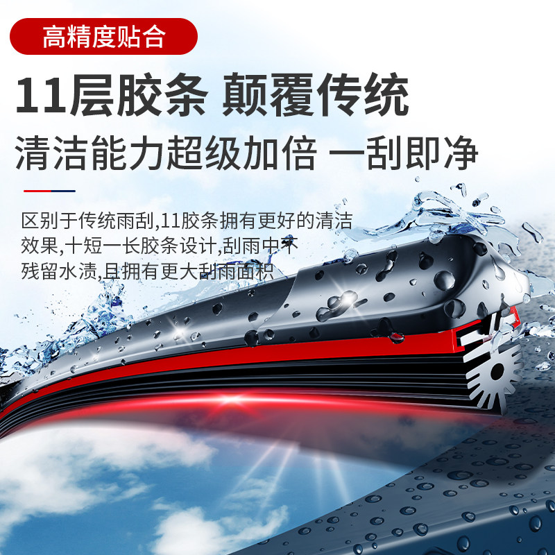 雨刮条 11层胶条雨刮器汽车前雨刷片无骨静音双刮原装 新升级