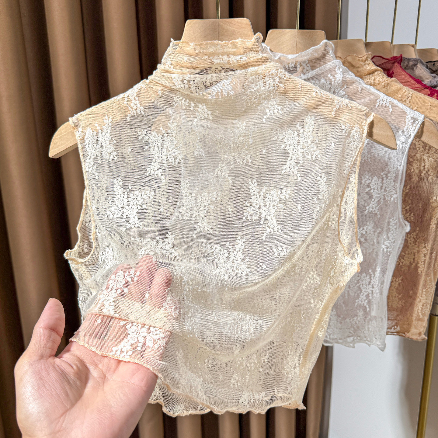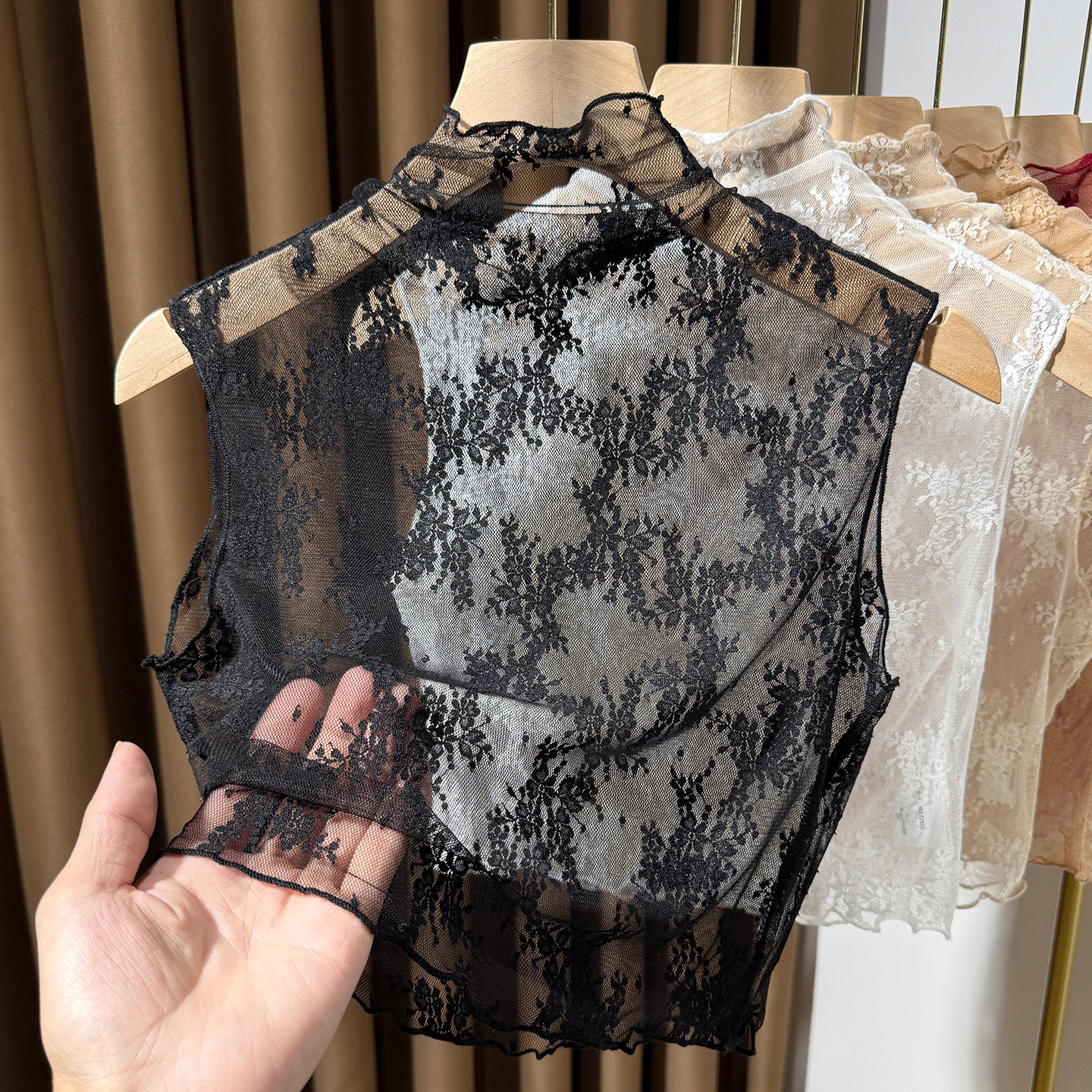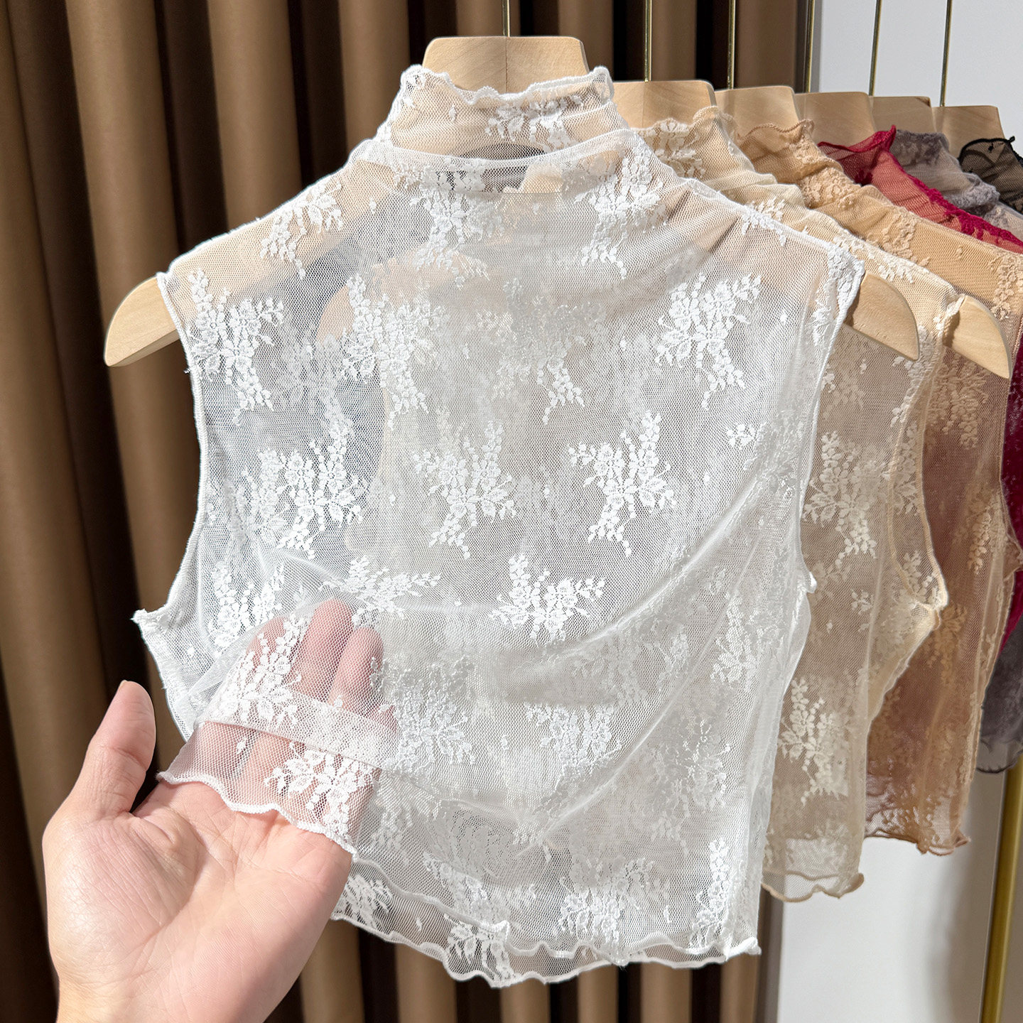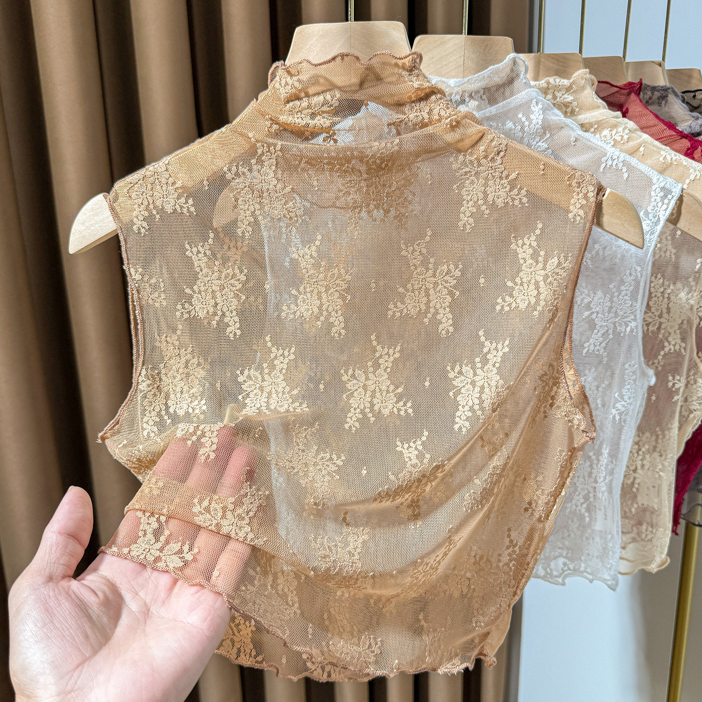 灰色蕾丝假领子女百搭秋冬内搭木耳边高领网纱打底衫 背心纱衣 无袖