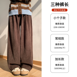 小个子高腰直筒春秋休闲卫裤 咖色雪尼尔阔腿裤 女秋冬加绒2026新款