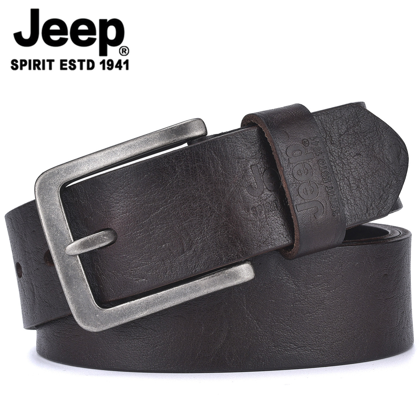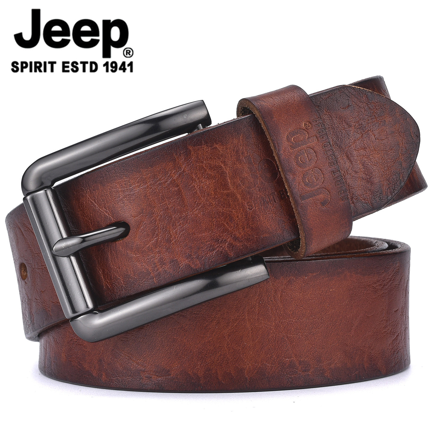 微瑕清仓正品 头层纯牛皮整张切割复古吉普腰带男 JEEP皮带真皮男士