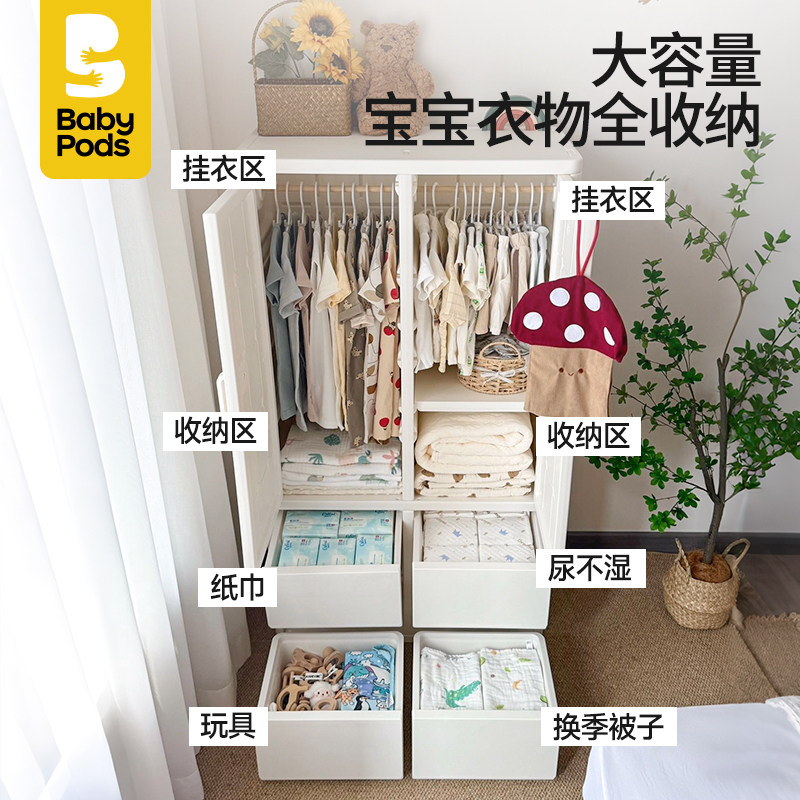 babypods儿童衣柜婴儿喂养台玩具收纳柜宝宝衣橱卧室家用塑料柜子