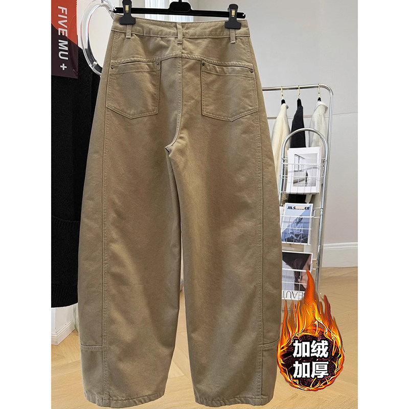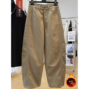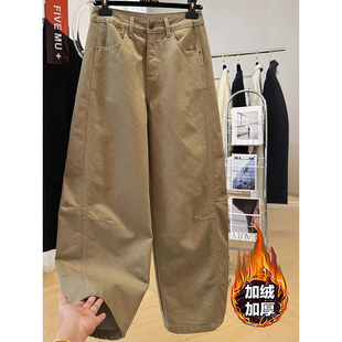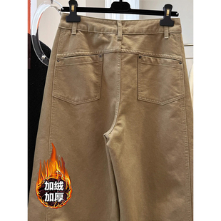 遮肉显瘦今年流行直筒阔腿裤 高端欧货加绒工装 新款 女秋冬季 休闲裤