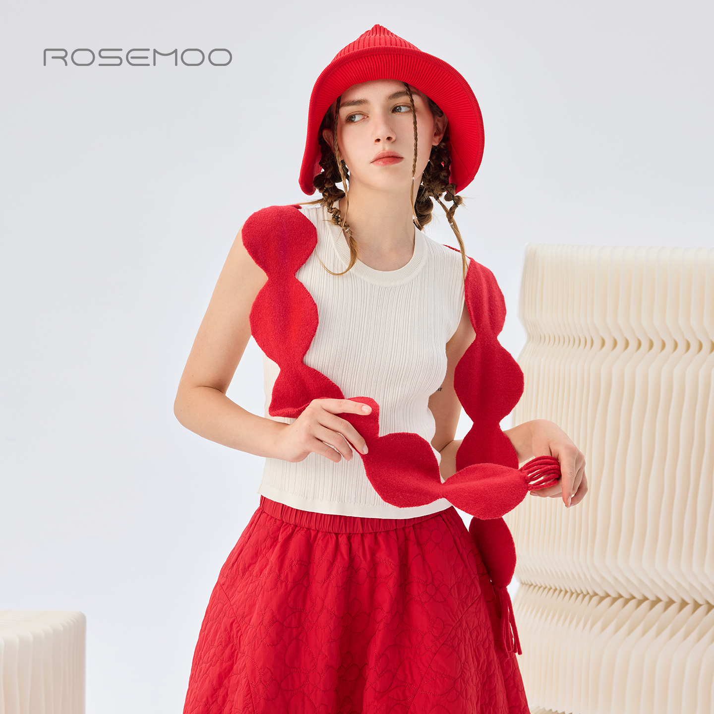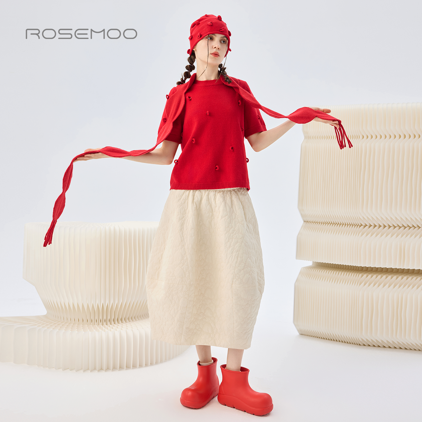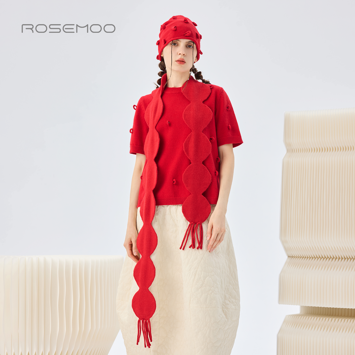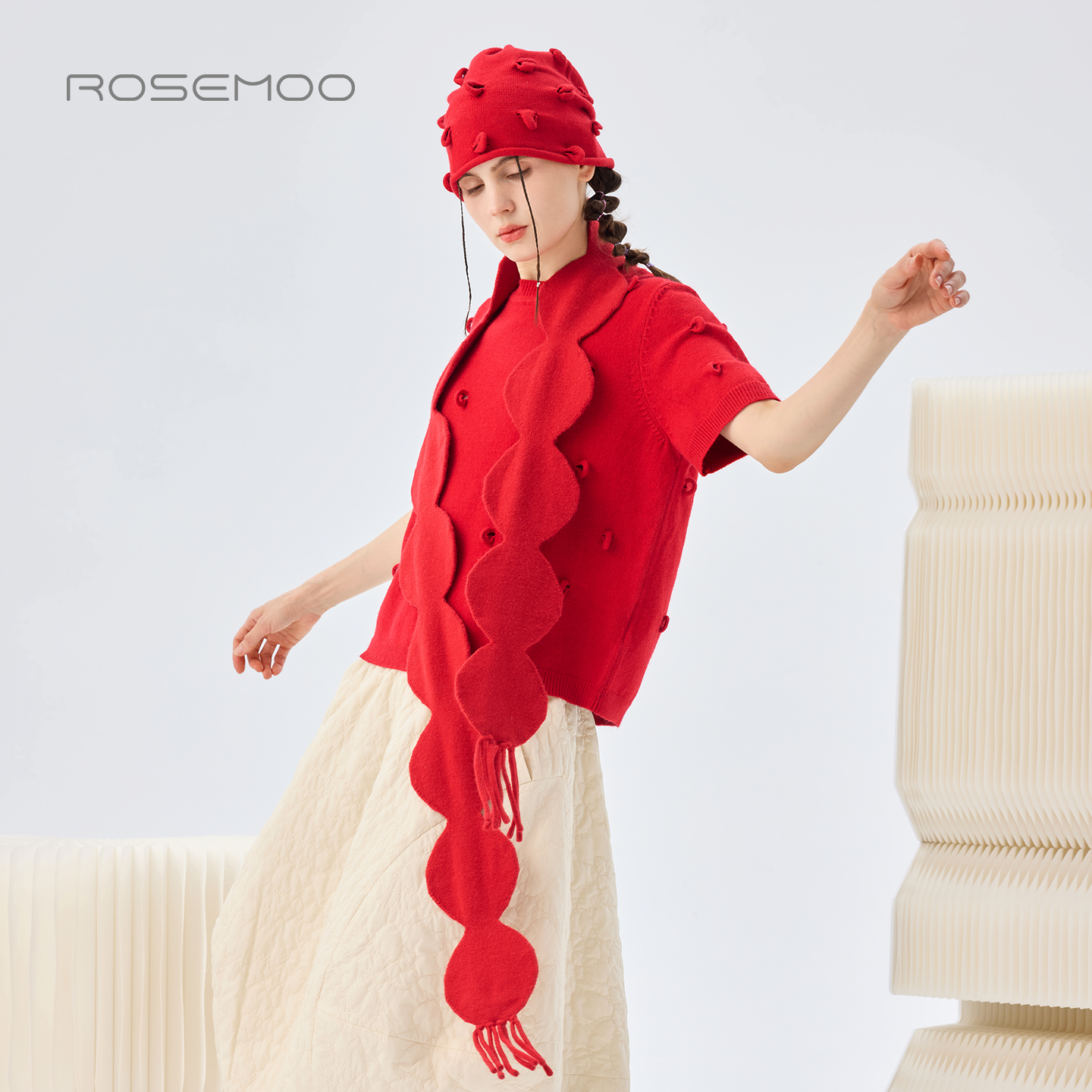 容子木ROSEMOO26春 亲肤舒适波点流苏围巾RWM1RP142A 商场同款