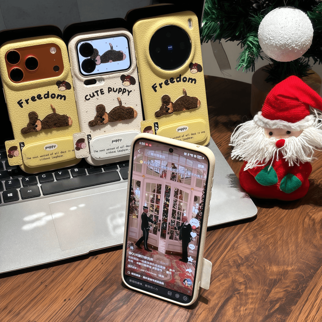 皮纹tpu秋冬刺绣小狗支架标签适用苹果17 16promax手机壳华为P70vivo小米15潮可爱保护套p80小米15pro