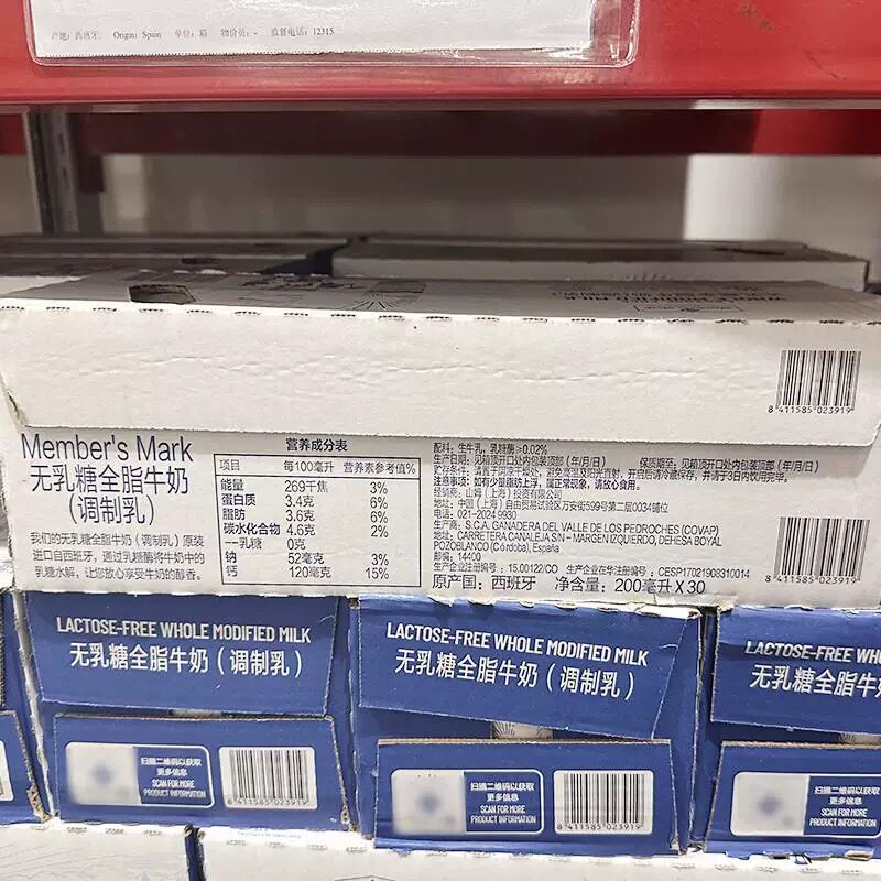 30盒早餐奶 250ml 山姆代购 西班牙进口山姆无乳糖全脂牛奶调制乳