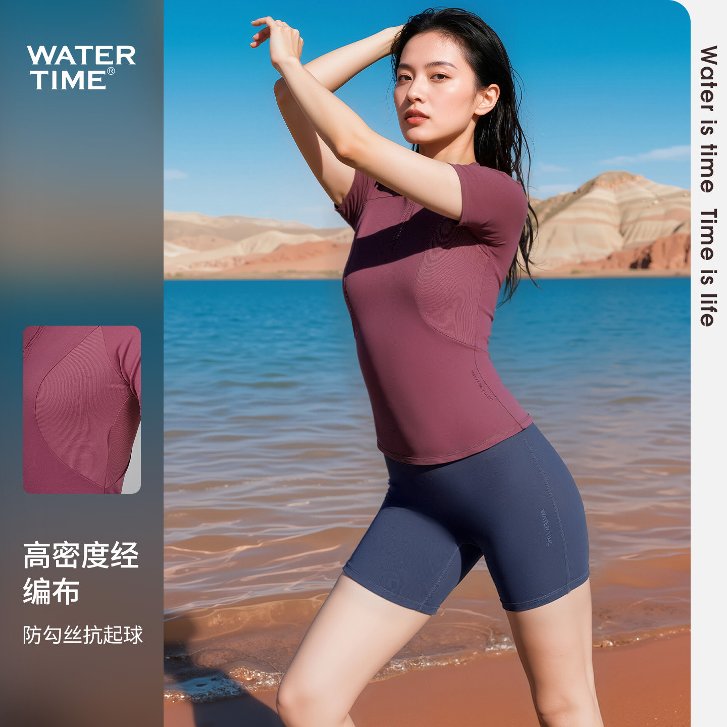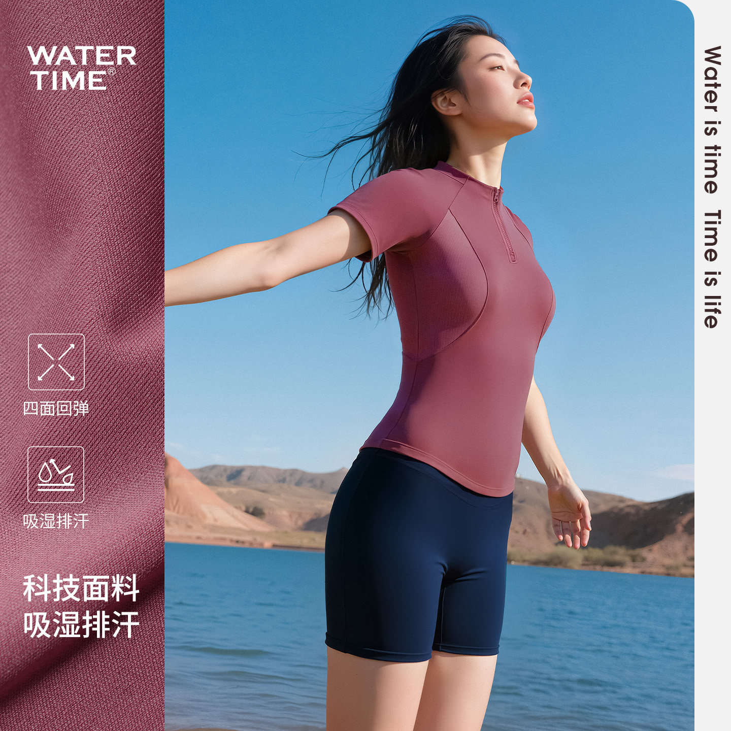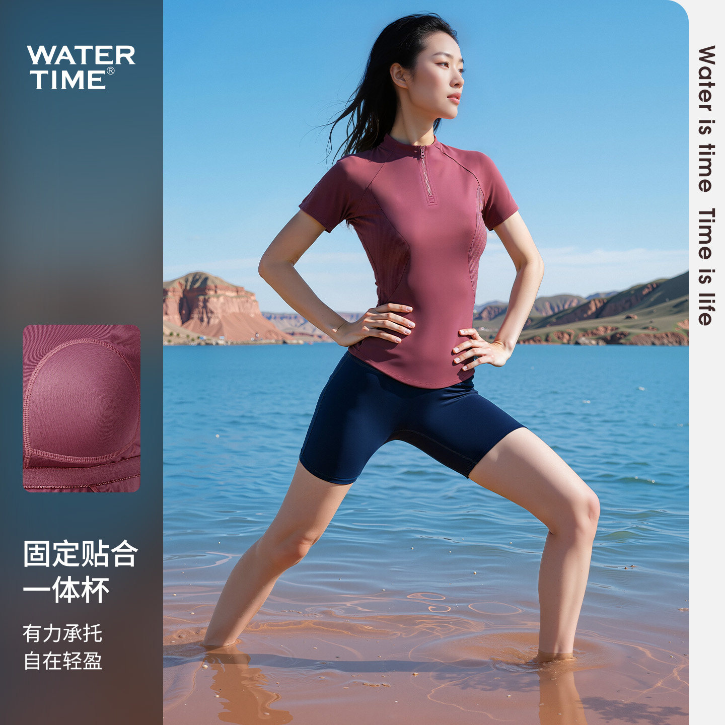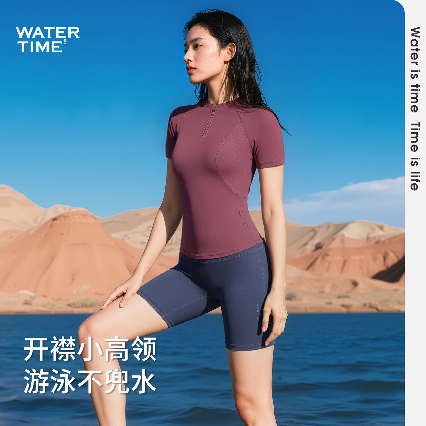 WaterTime泳衣女士新款 分体平角微胖温泉海边度假休闲保守游泳衣