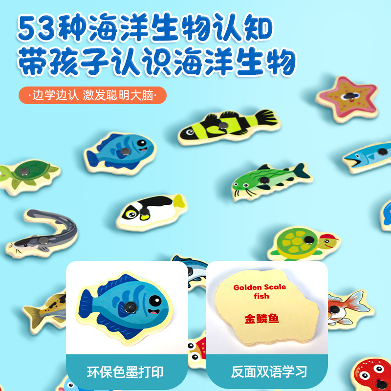 玩具儿童1到3岁早教益智类磁吸磁铁钓鱼竿开发大脑专注力互动鱼类