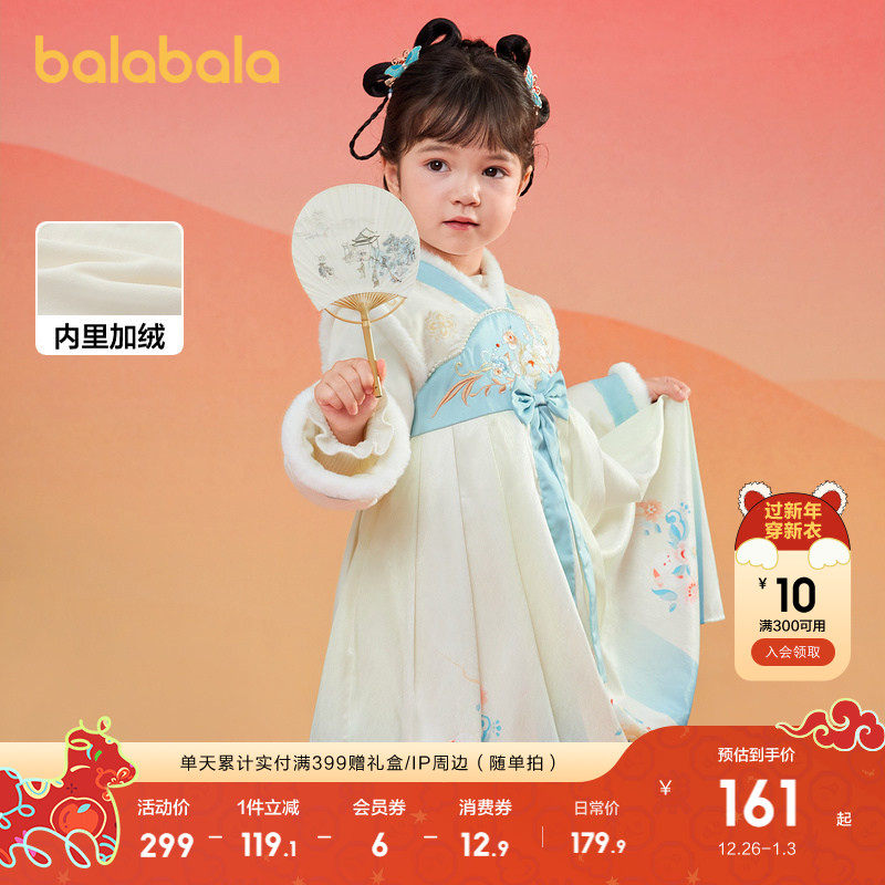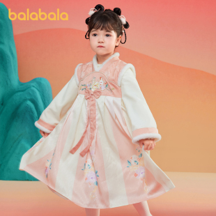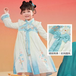 新中式 巴拉巴拉女童汉服改良襦裙国风连衣裙冬装 裙子绣花洋气时尚