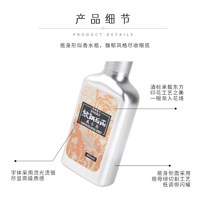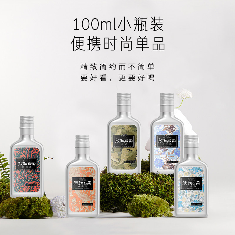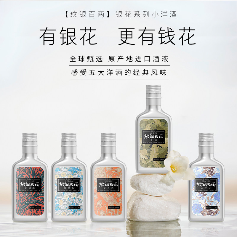 高升纹银百两银花便携威士忌白兰地朗姆酒伏特加金酒小烈酒三瓶装
