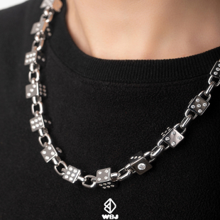实心纯银 链 银镀金S925纯银镀金银饰项链嘻哈 骰子裤 wbj定制珠宝