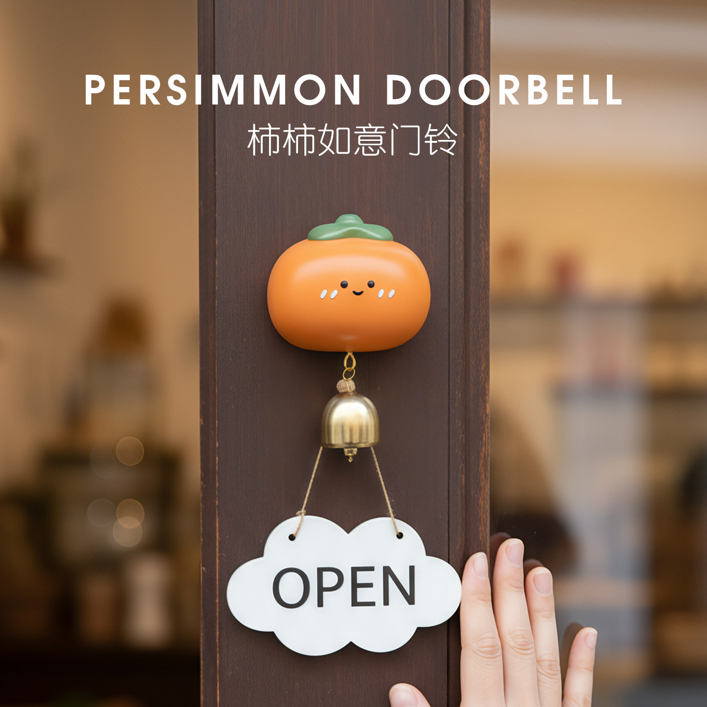 事事如意创意柿子多巴胺入户门铃风铃磁吸冰箱磁贴开门提醒门铃铛