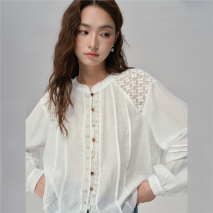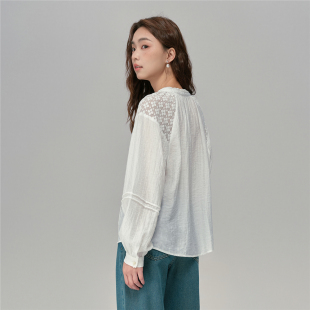 女长袖 衬衫 18345220 佐丹奴2026年春肌理拼接蕾丝宽松法式 设计师款