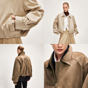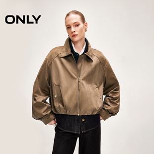 宽松前移肩线短款 复古翻领灯笼袖 PU夹克外套女 新款 ONLY2026春季