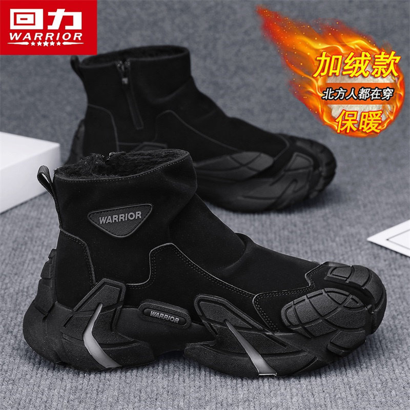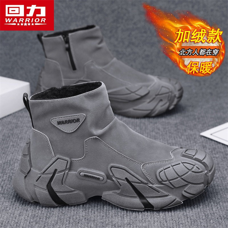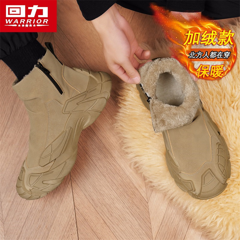 工装 回力加绒马丁靴男士 户外运动拉链加厚保暖棉鞋 新款 雪地靴 冬季