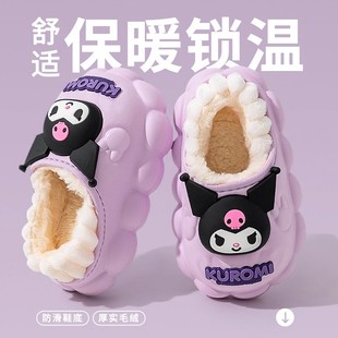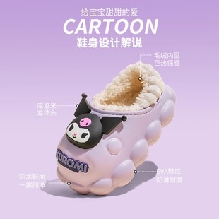 女孩宝宝毛拖鞋 室内防水棉鞋 包跟冬 女童2025新款 库洛米儿童棉拖鞋