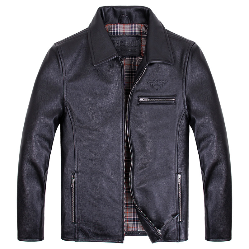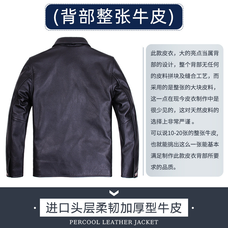欧美休闲真皮皮衣男中年翻领进口头层厚牛皮皮夹克秋冬大码 皮外套