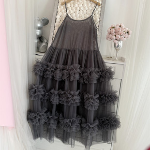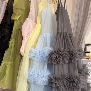 长裙 收腰显瘦气质无袖 pusumede法式 方领针织拼接背心连衣裙女夏季
