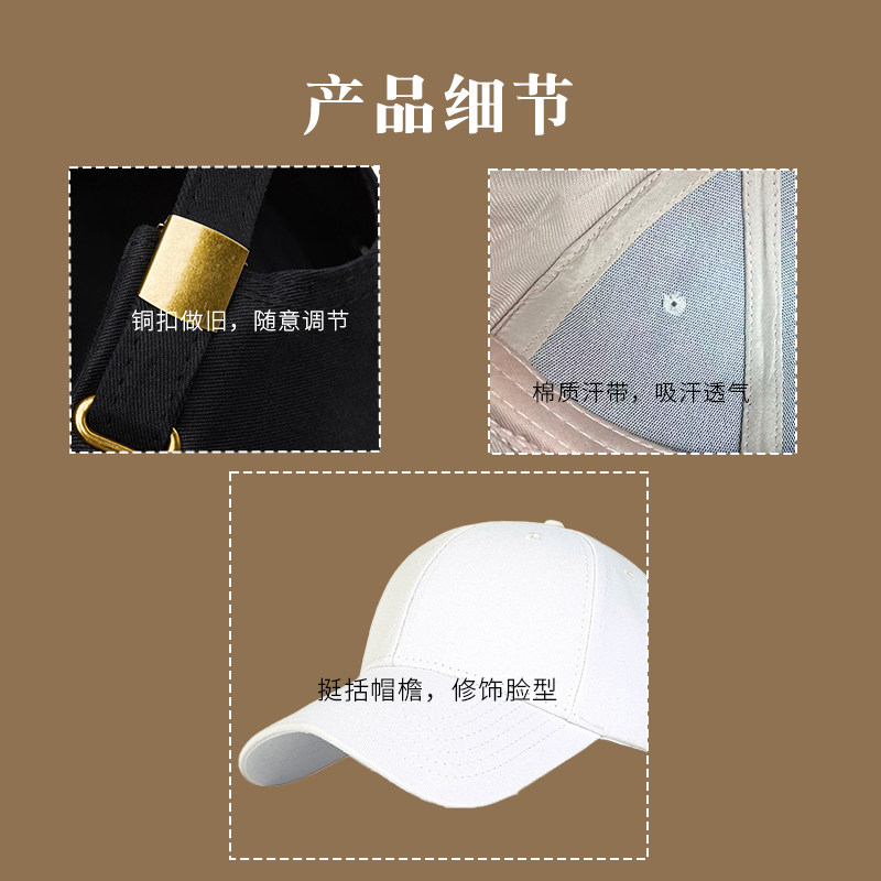 韩版 百搭鸭舌帽遮阳防晒棒球帽男女纯棉白色ins春夏硬顶加深显脸