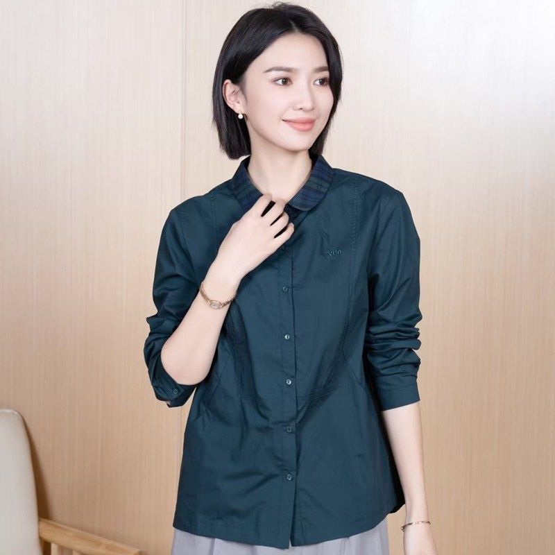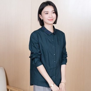 棉衬衫 YUN韫2026春季 格子领单排扣通勤简约显瘦长袖 女装 5192 新款