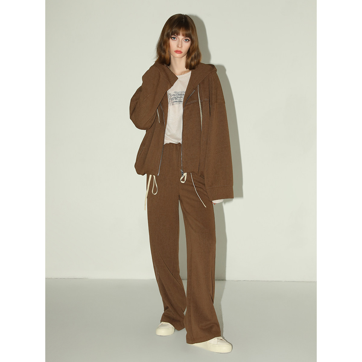 PA0019 COCOBELLA美拉德撞色明线炒色花纱阔腿裤 宽松直筒休闲裤